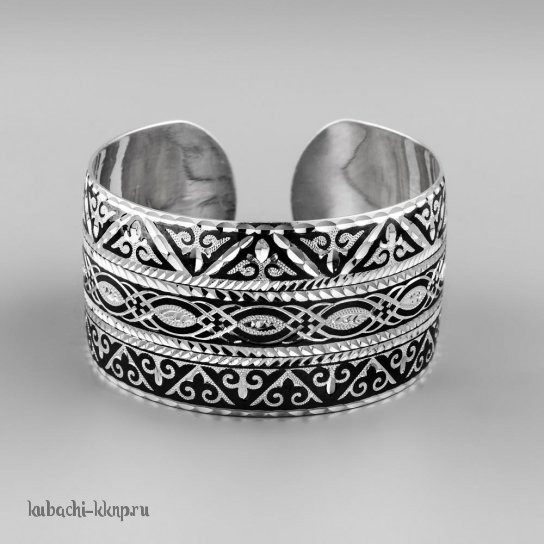 Серебряный широкий браслет Кубачи с изящным орнаментом - БР184