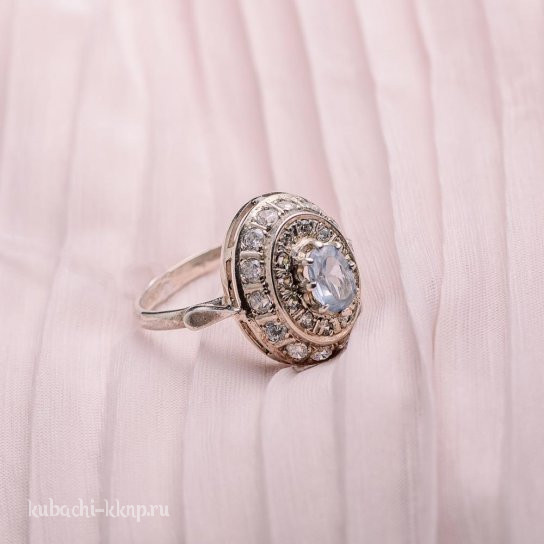 Серебряное кольцо с натуральным топазом и фианитами «Аристократка», Ag-к-9
