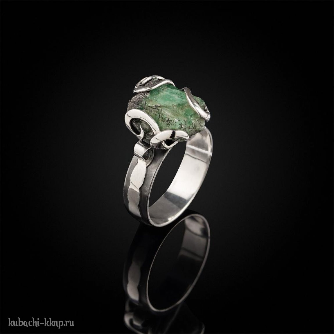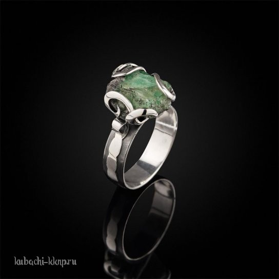 Фантазийное кольцо авторской работы с натуральным изумрудом в породе, Ag-к-28