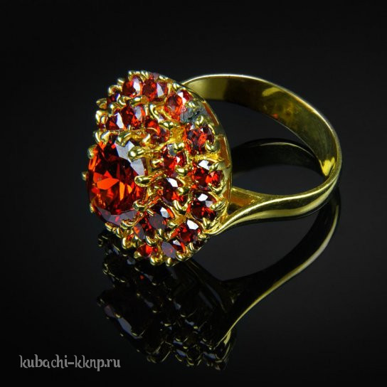 Серебряное кольцо с фианитами цвета гранат позолота, к237