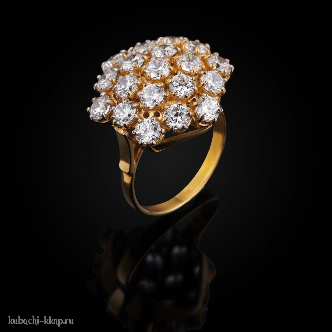 Кольцо кубачи с россыпью камней в позолоте «Брызги», к14