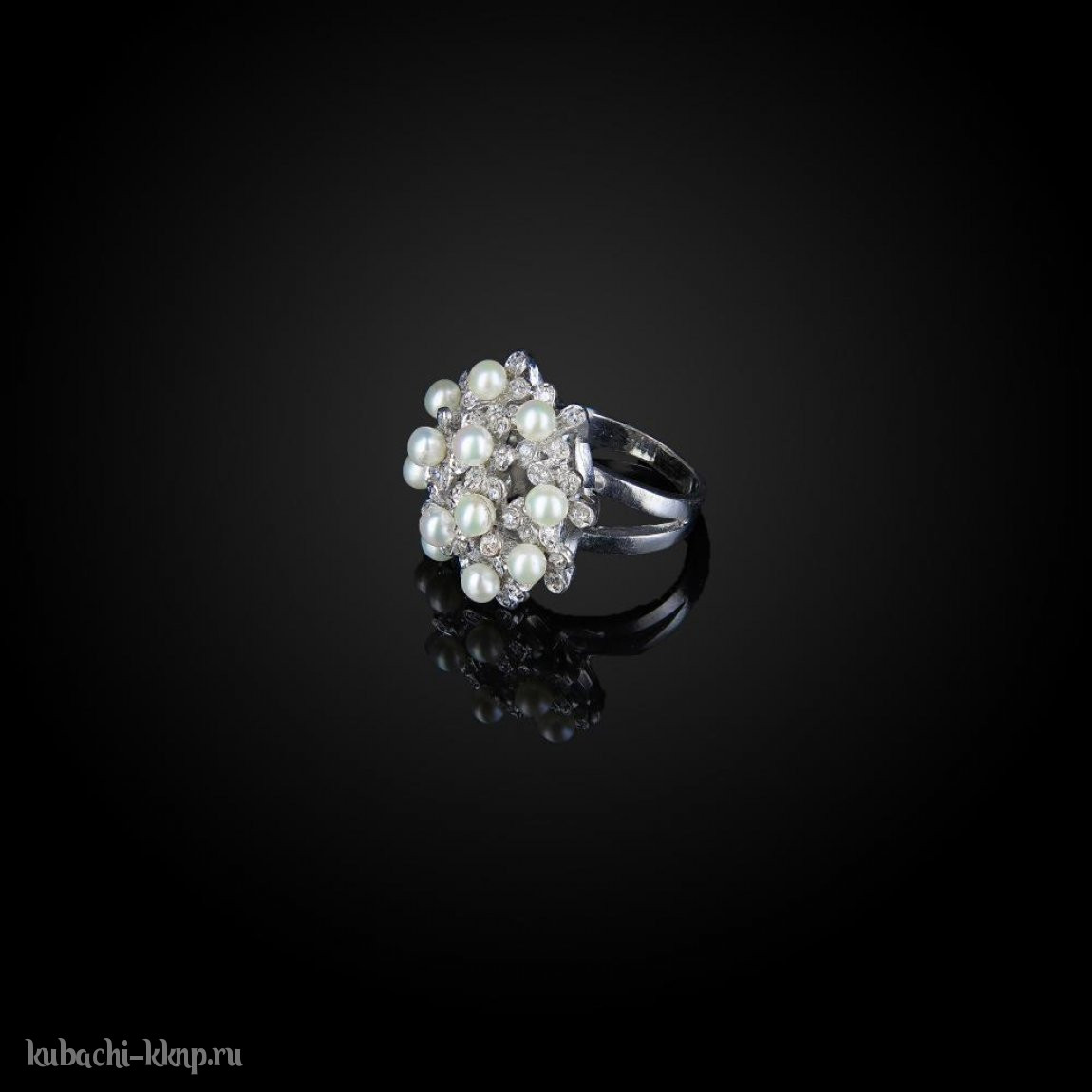 Кольцо кубачи с фианитами и искусственным жемчугом «Море», к801