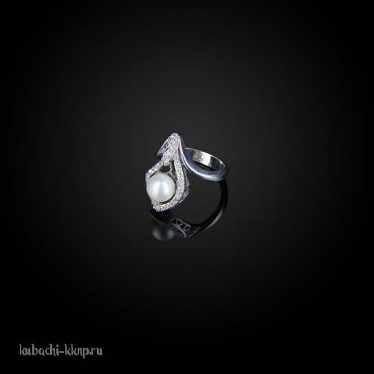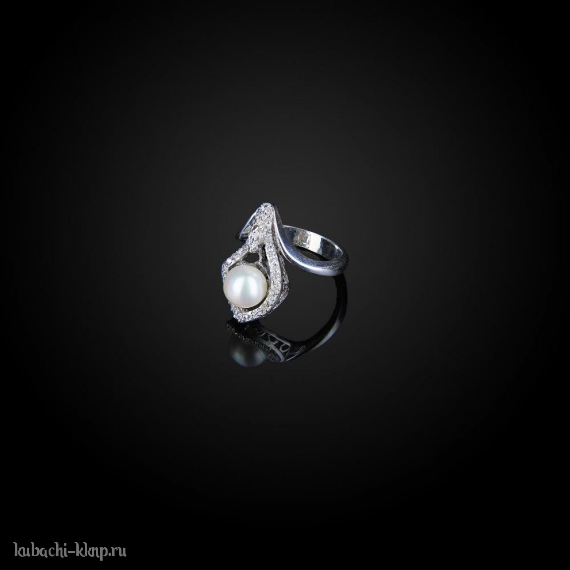 Серебряное кольцо Кубачи с фианитами и искусственным жемчугом, к816