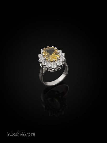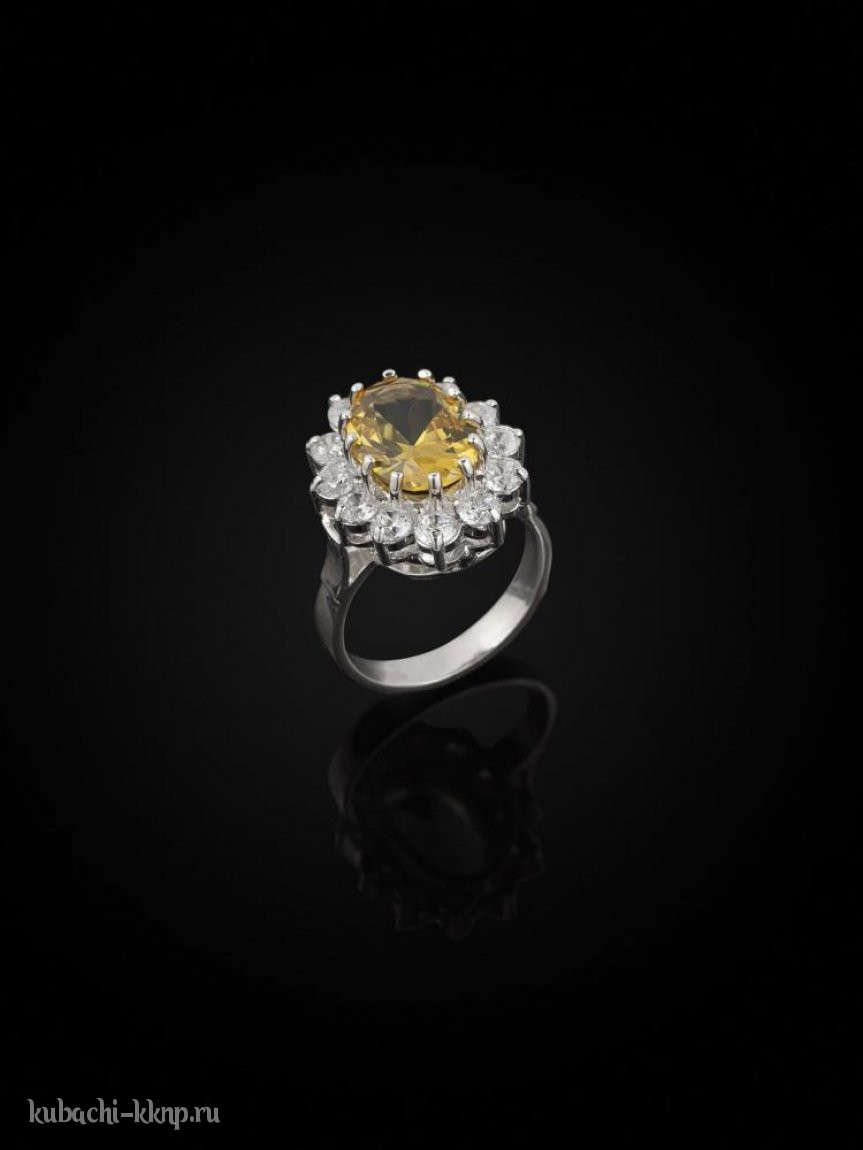 Серебряное кольцо Кубачи с фианитами под изумруд - к807