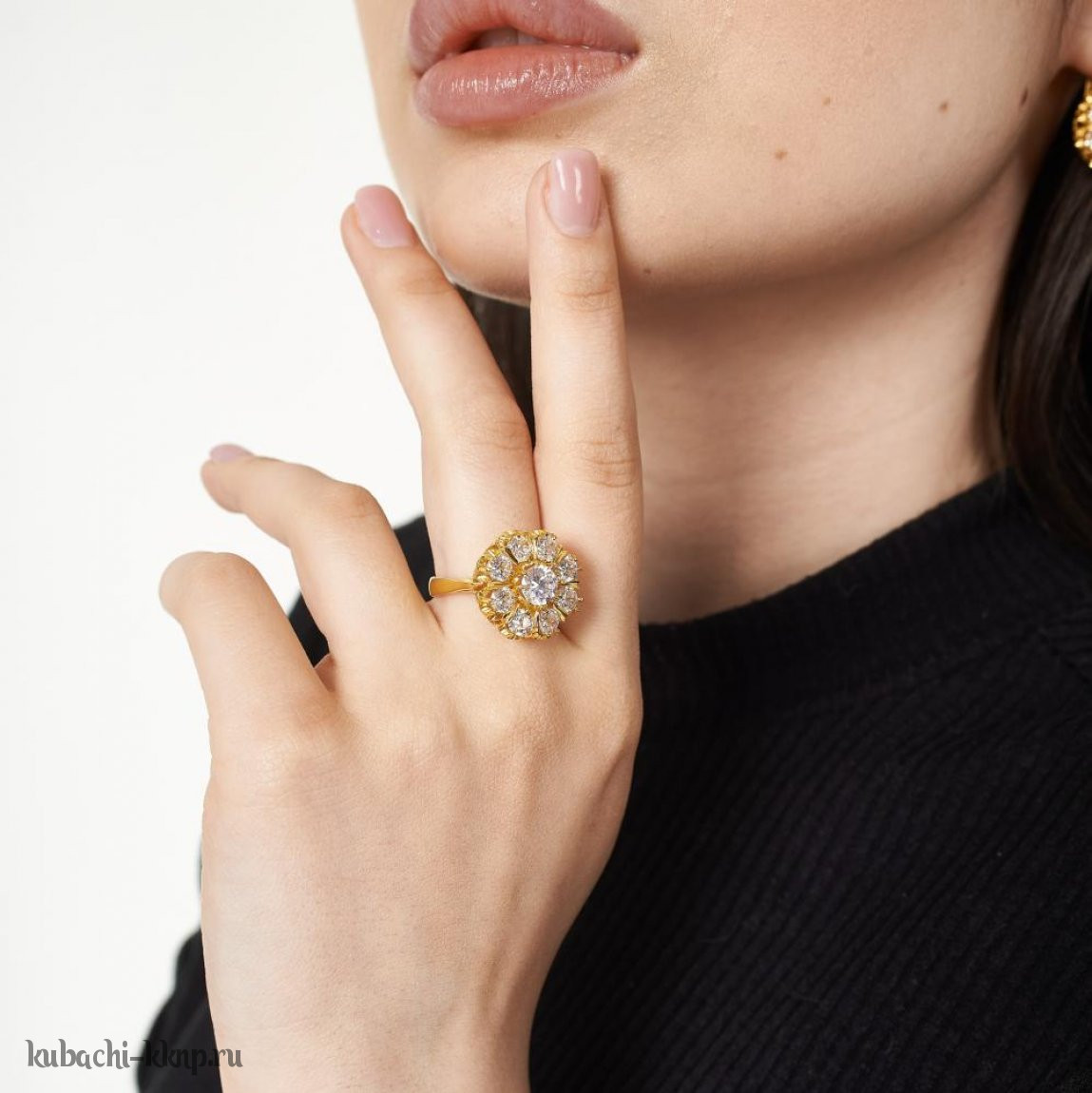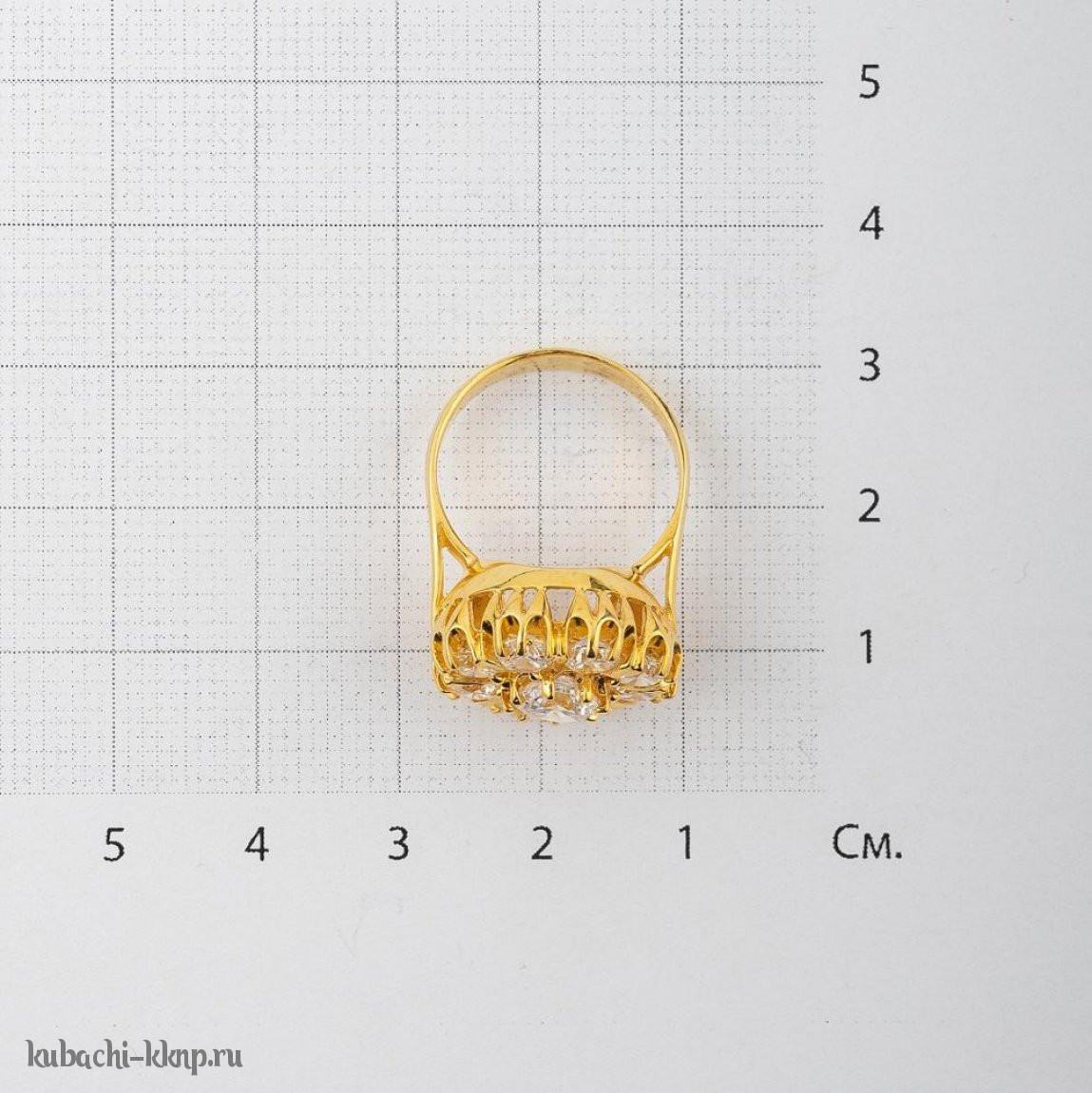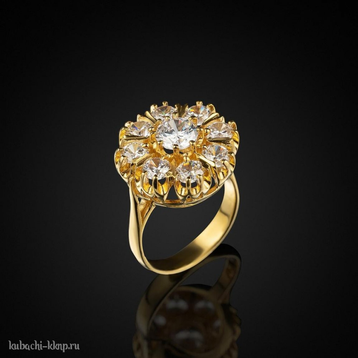 Кольцо кубачи с россыпью камней в позолоте