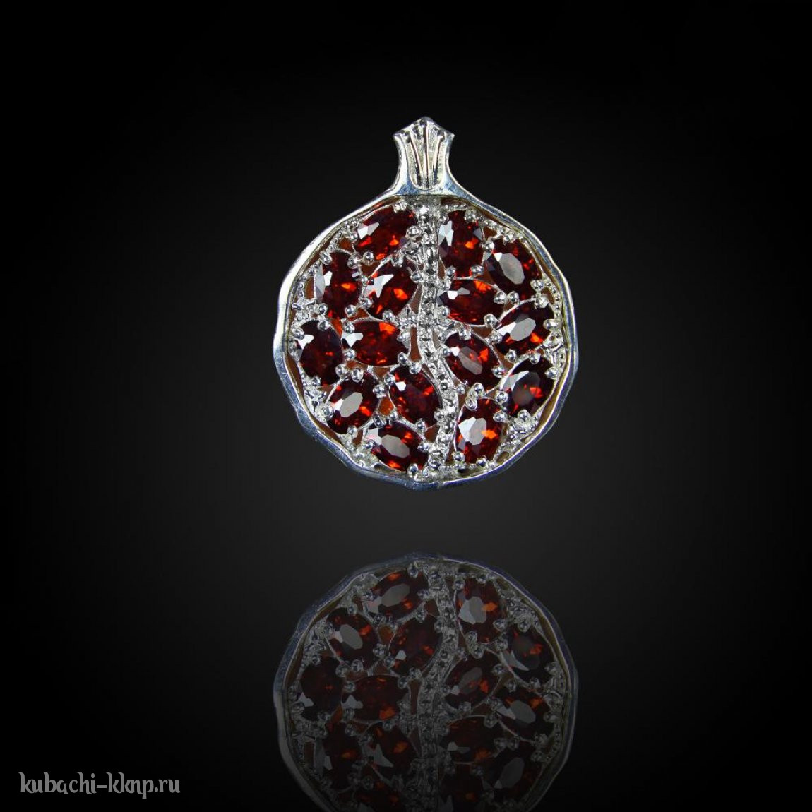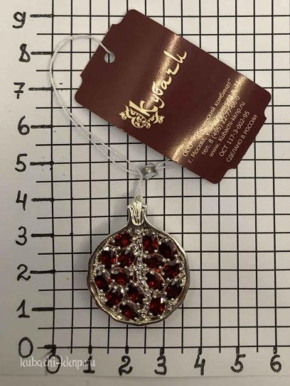 Подвеска кубачи с фианитами цвета гранат , подв218