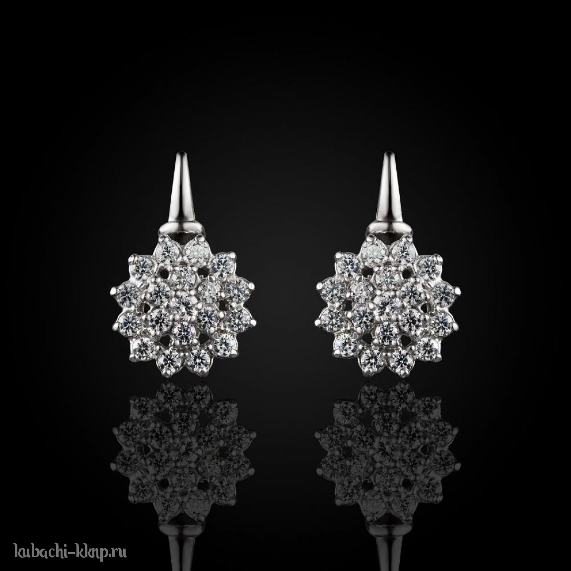 Серебряные серьги с россыпью белых камней фианитов «Двойная ромашка», Ag-с73