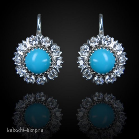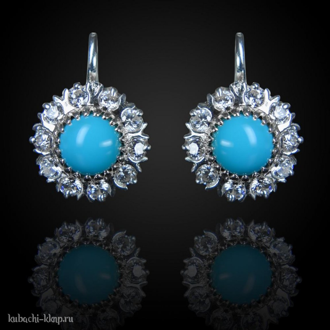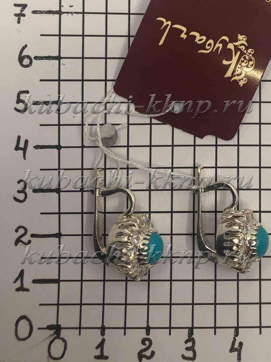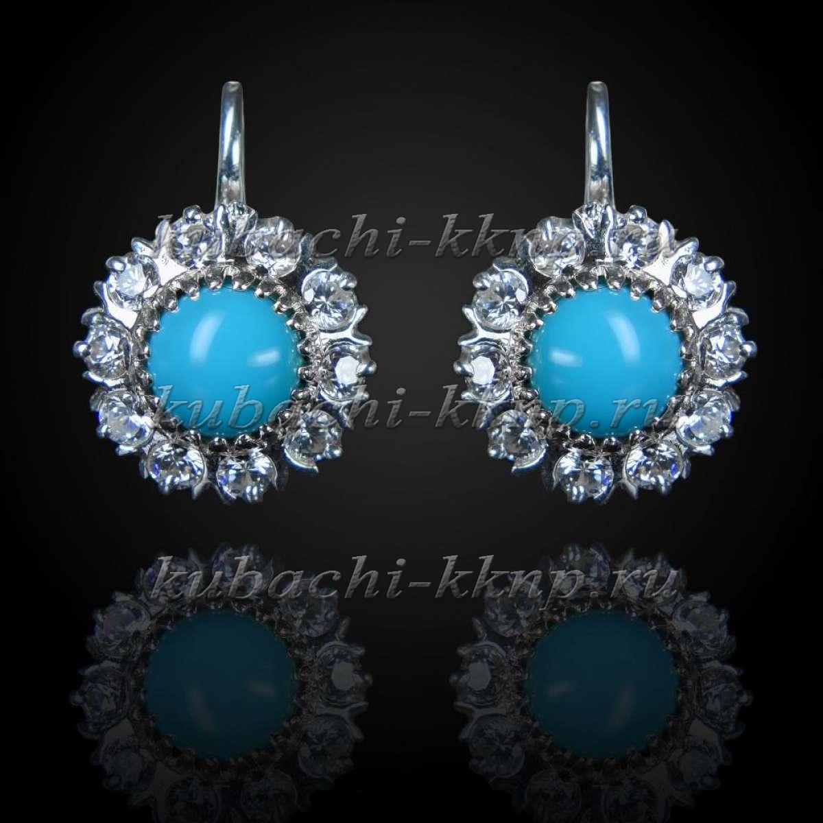 Серьги Кубачи «Малинка» с бирюзой и белыми фианитами серебро, с216