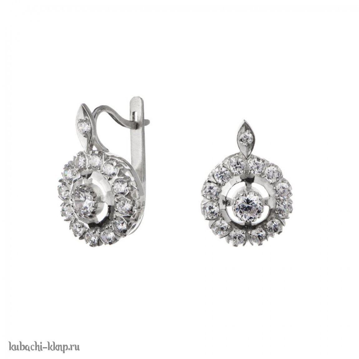 Серьги Кубачи  с россыпью фианитов Большая Луна - с239