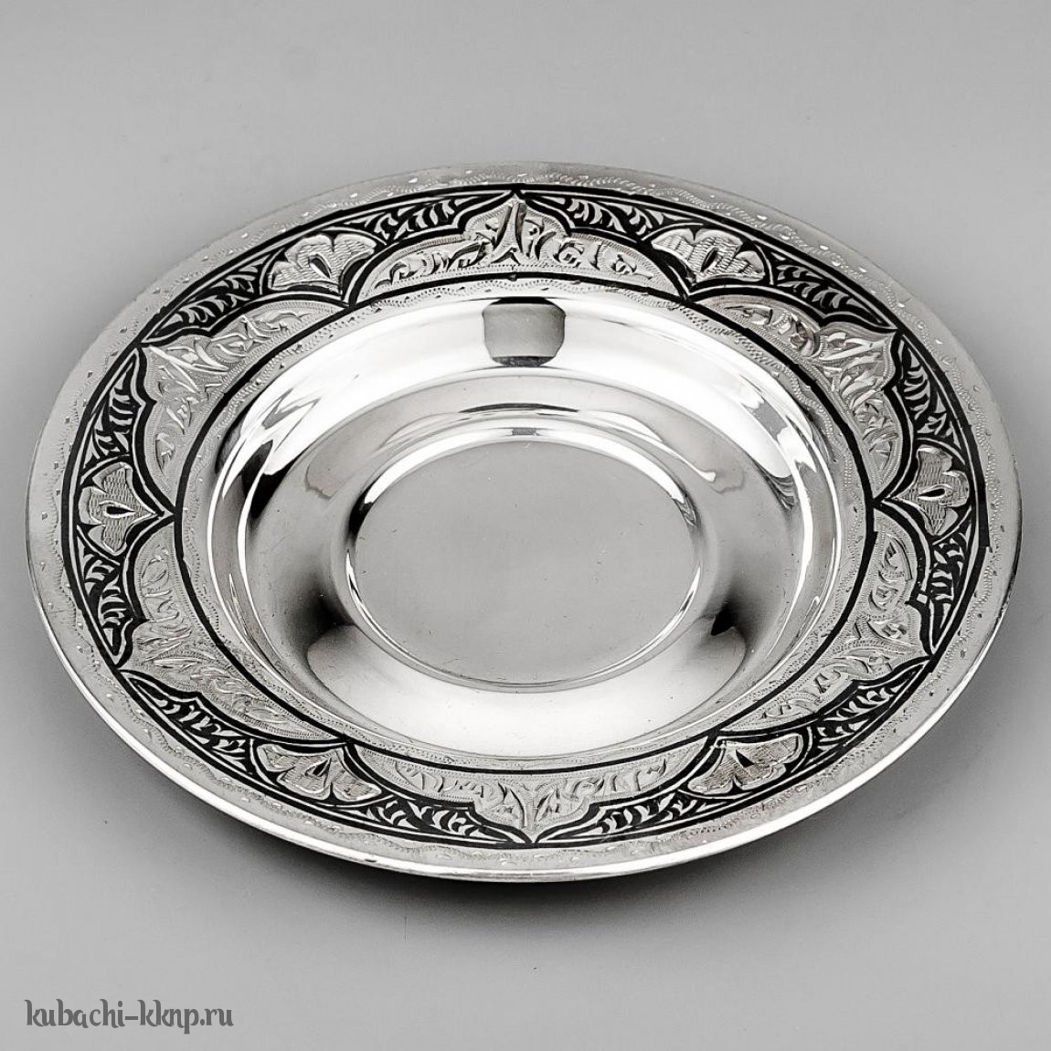 Блюдце серебряное с гравировкой и чеканкой - бл05