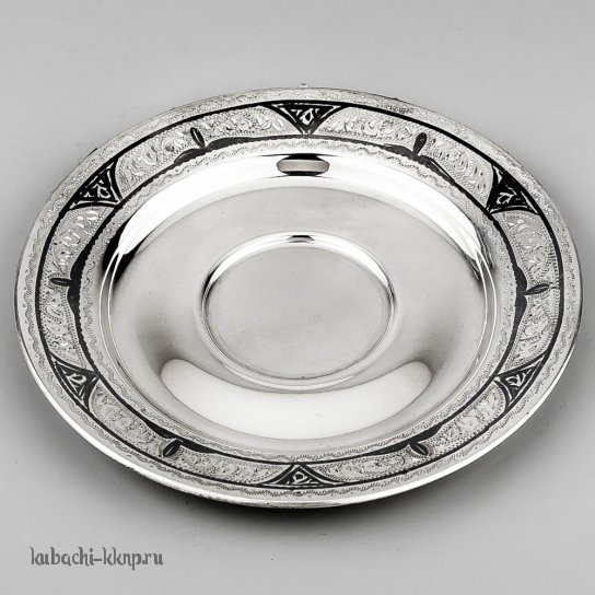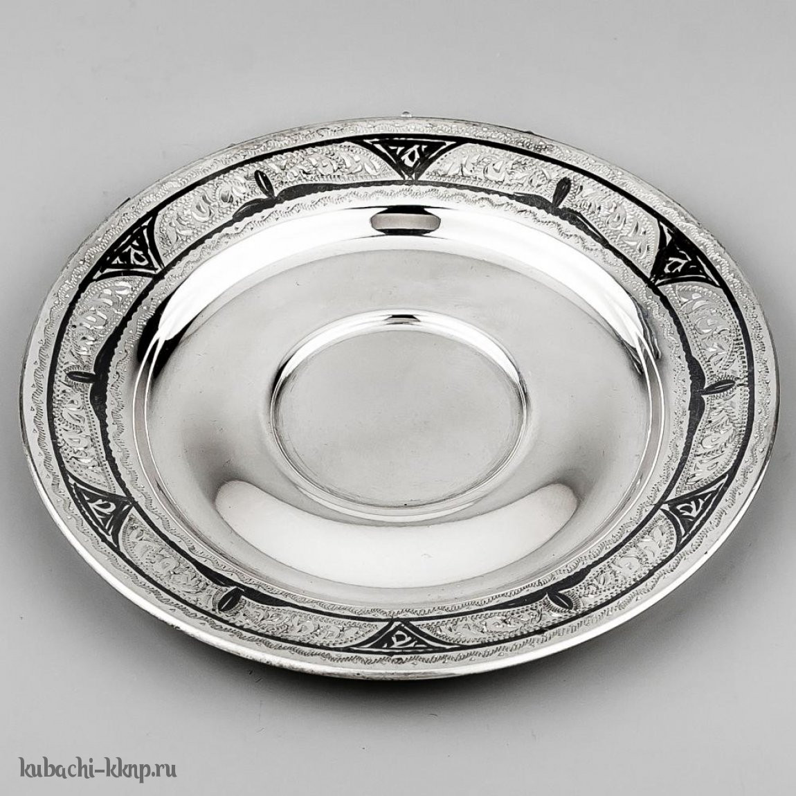 Блюдце серебряное с гравировкой и эмалью - БЛ025