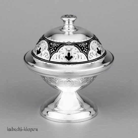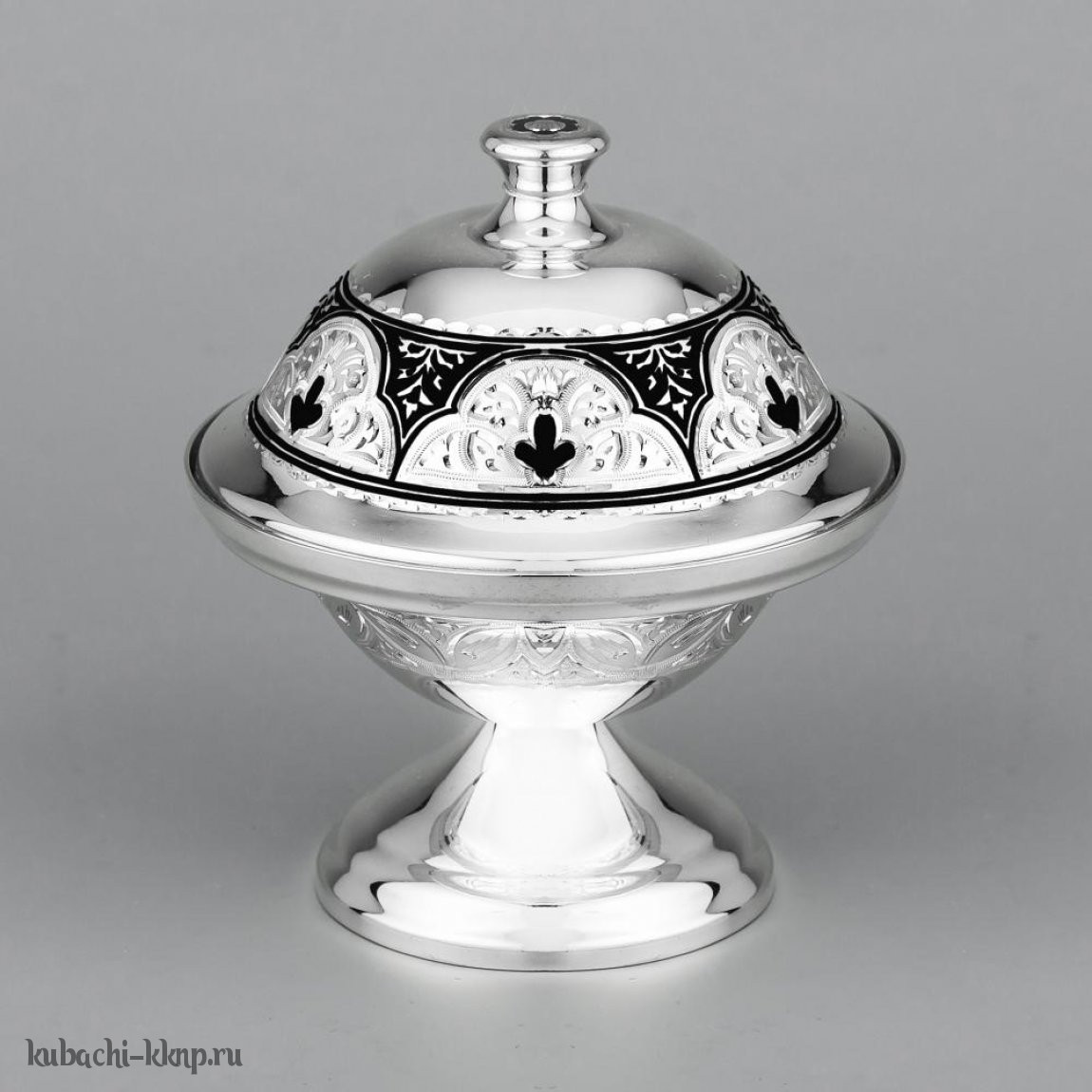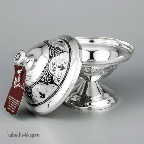 Икорница из серебра с чеканкой и ромбиками - ик028