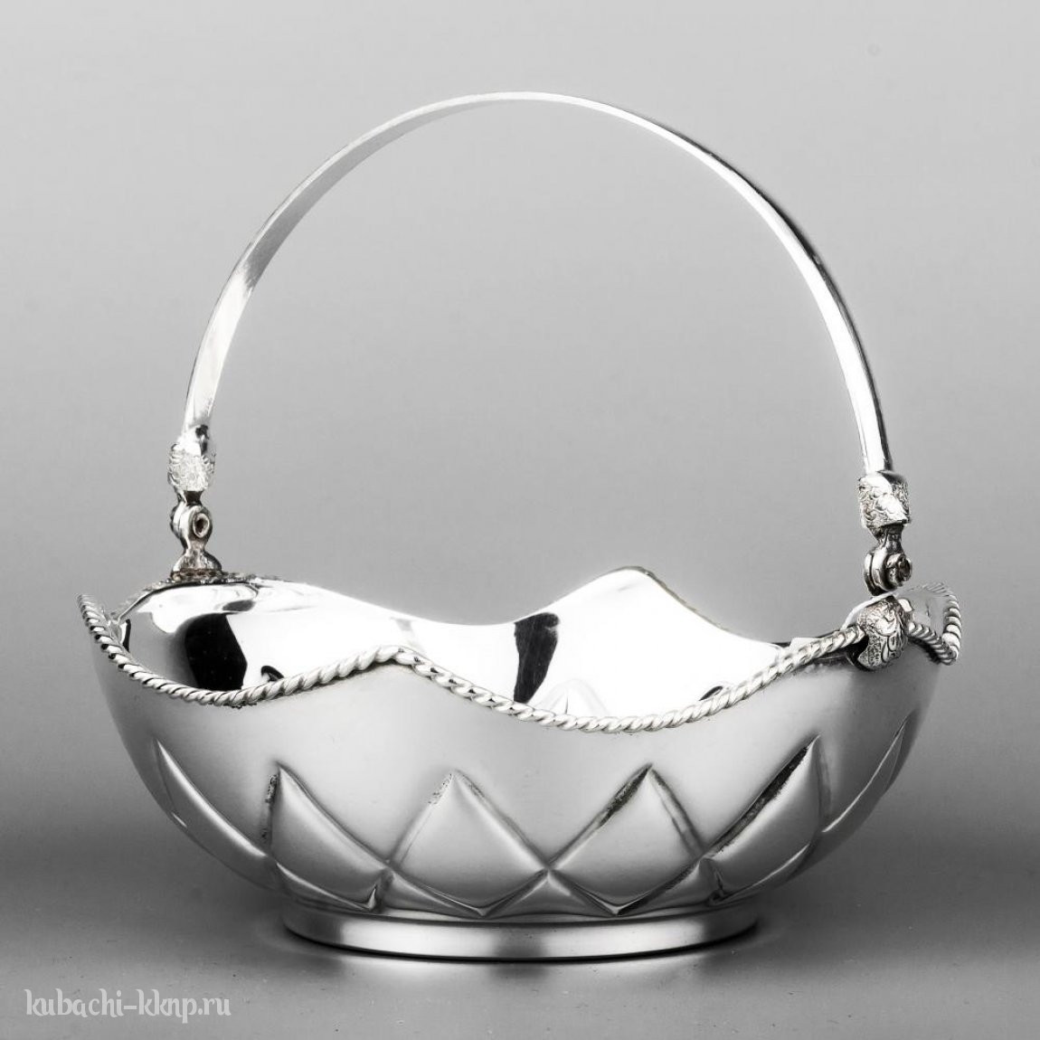 Серебряная конфетница с ручкой(глянцевая), кф111