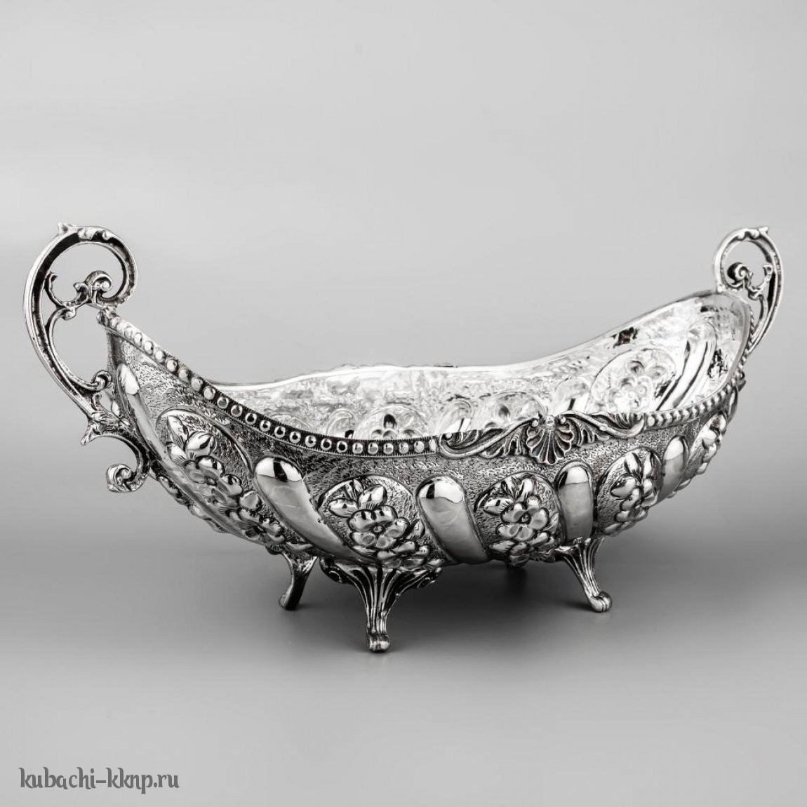 Серебряная конфетница - ладья «Цветы» - кф157