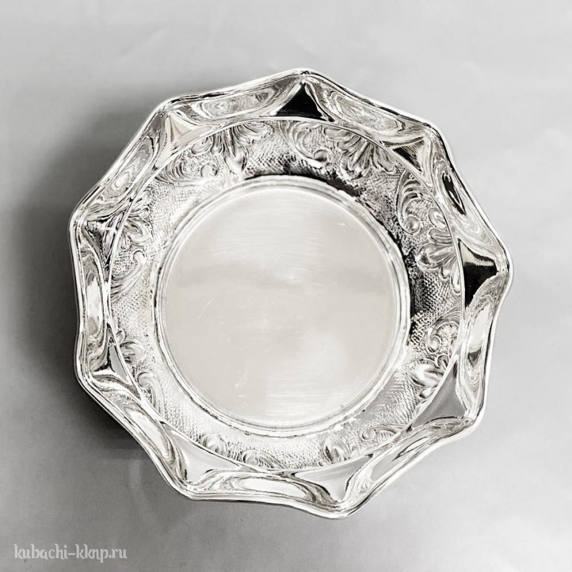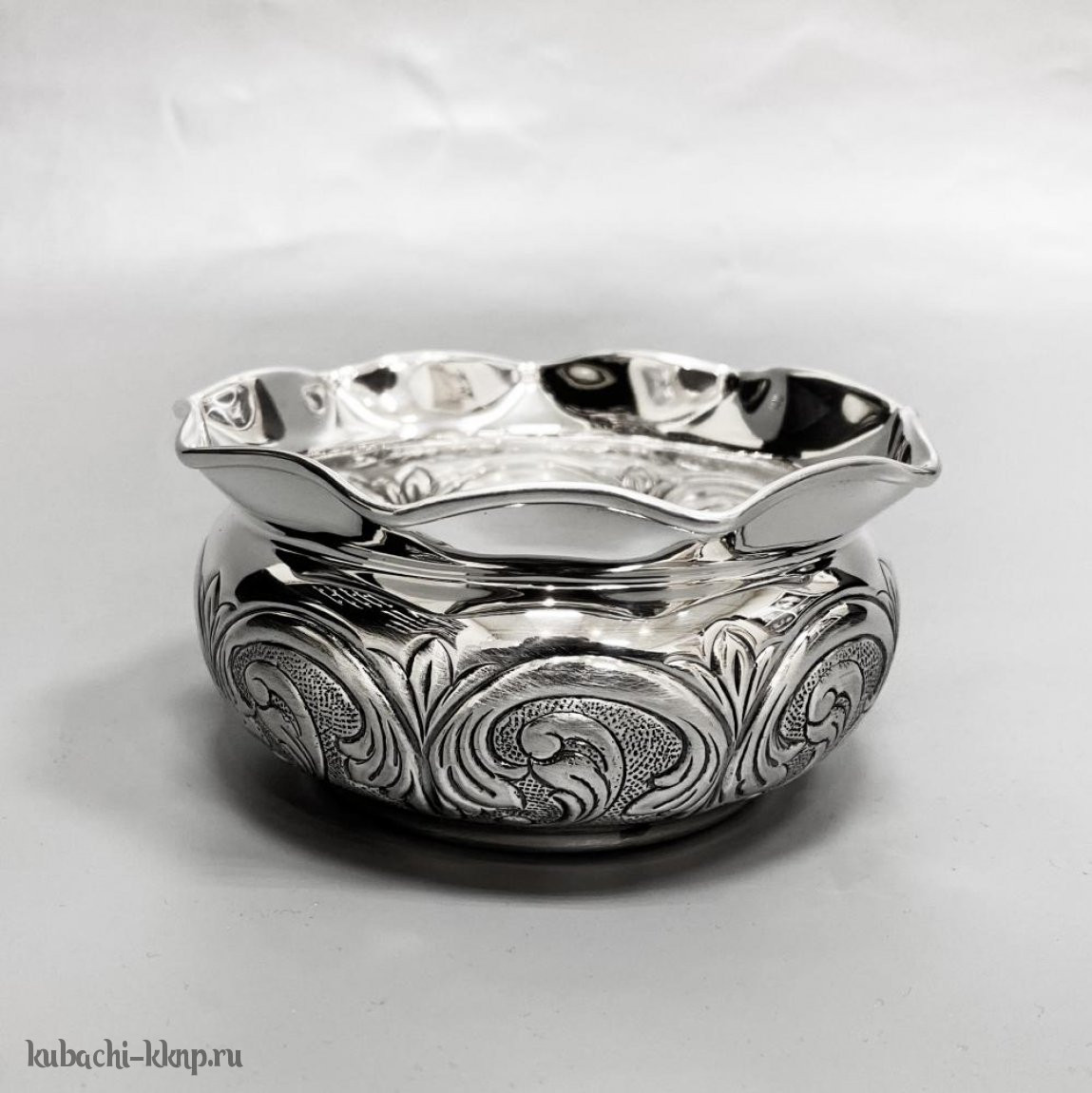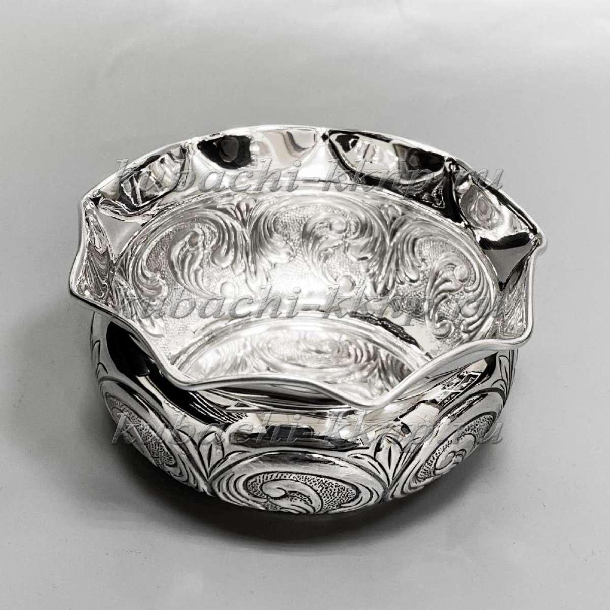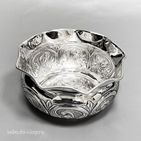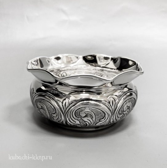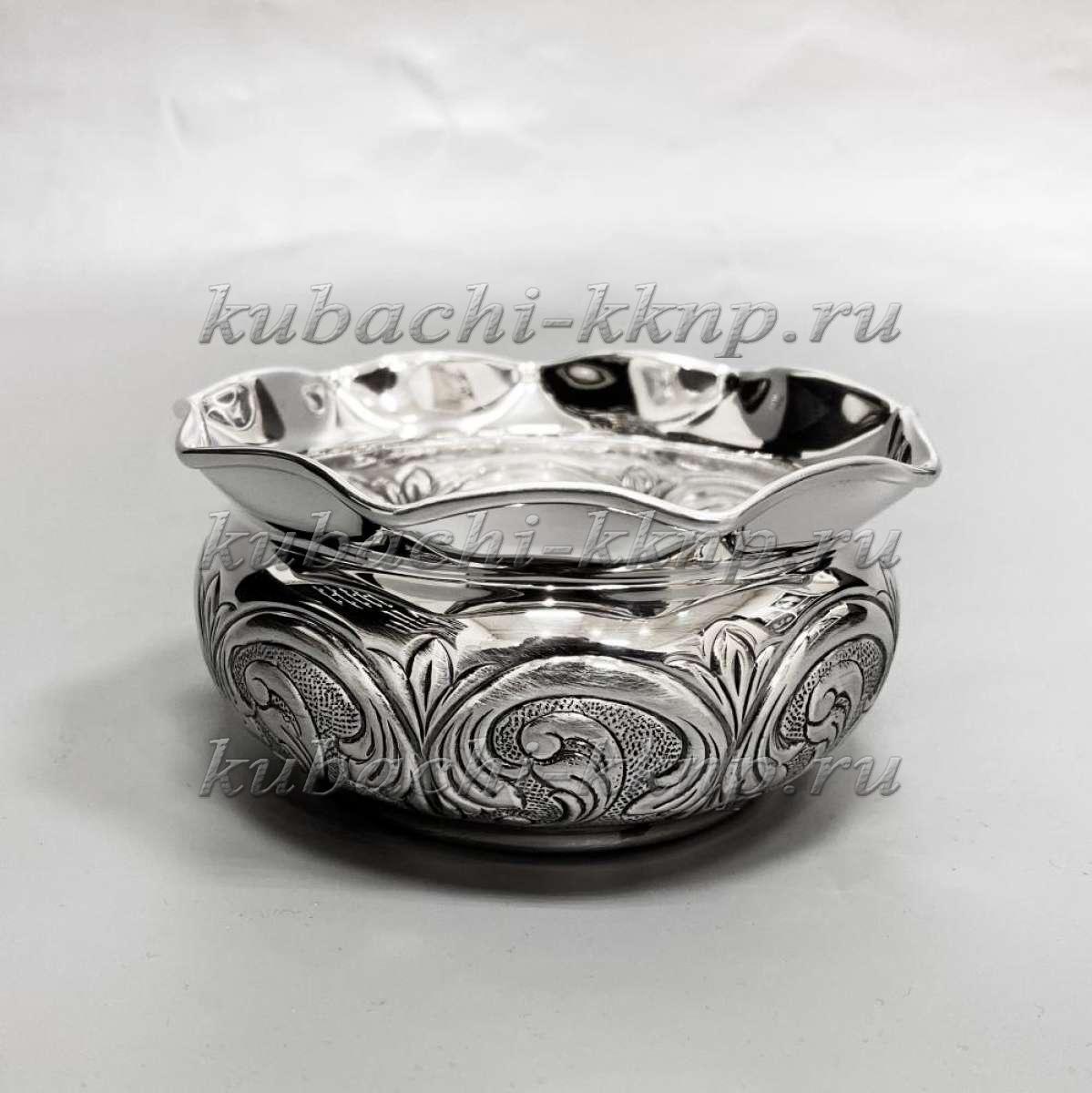 Серебряная конфетница без ножки с красивыми узорами, кф184