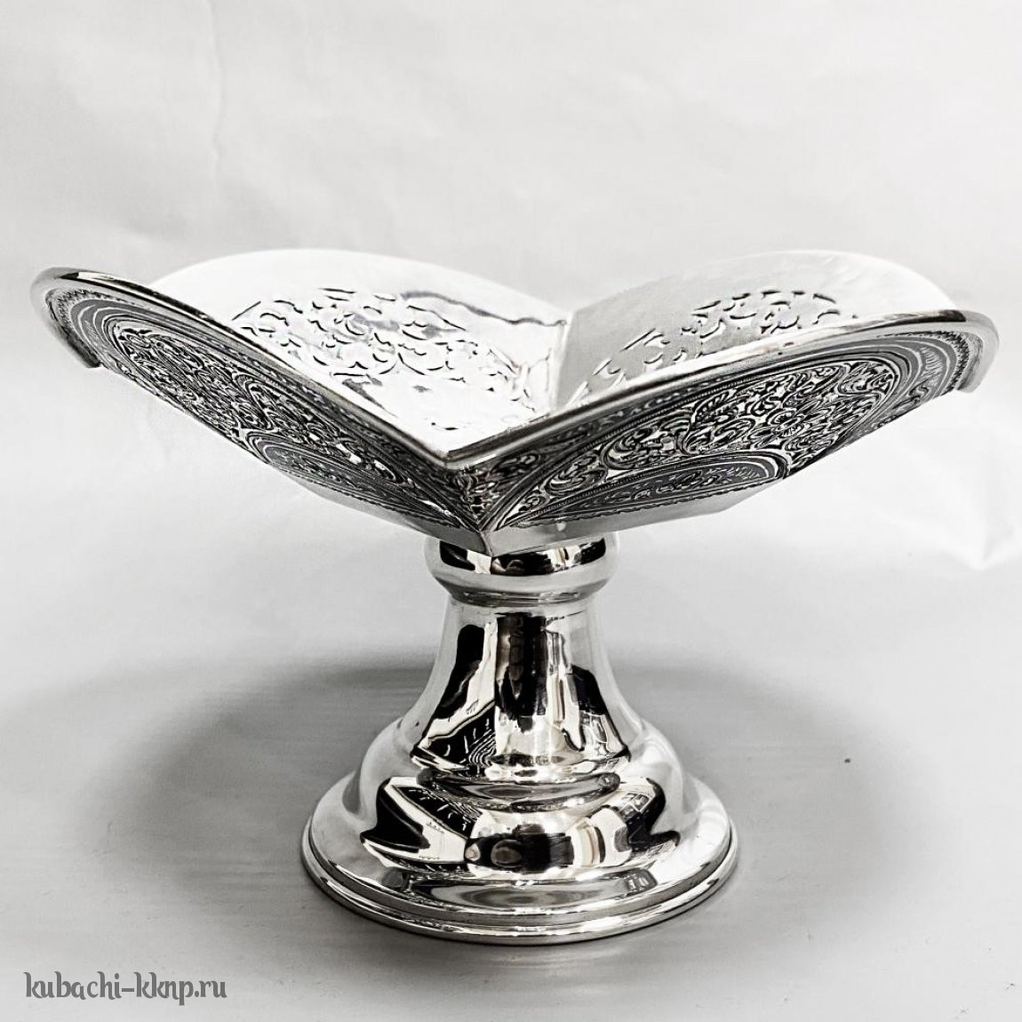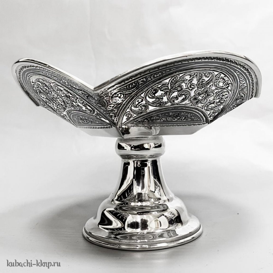 Серебряная конфетница на ножке с резным рисунком, КФ188