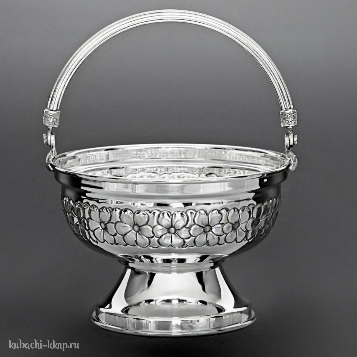 Серебряная конфетница - корзинка «Аркан» (большая) - кф014
