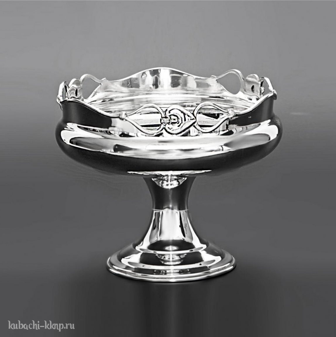Серебряная конфетница - ладья  «Цветы» - кф153