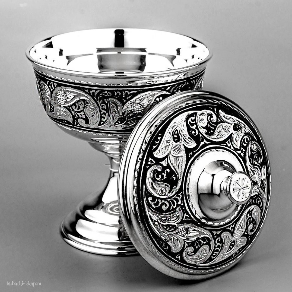 Серебряная креманка с крышкой, км03