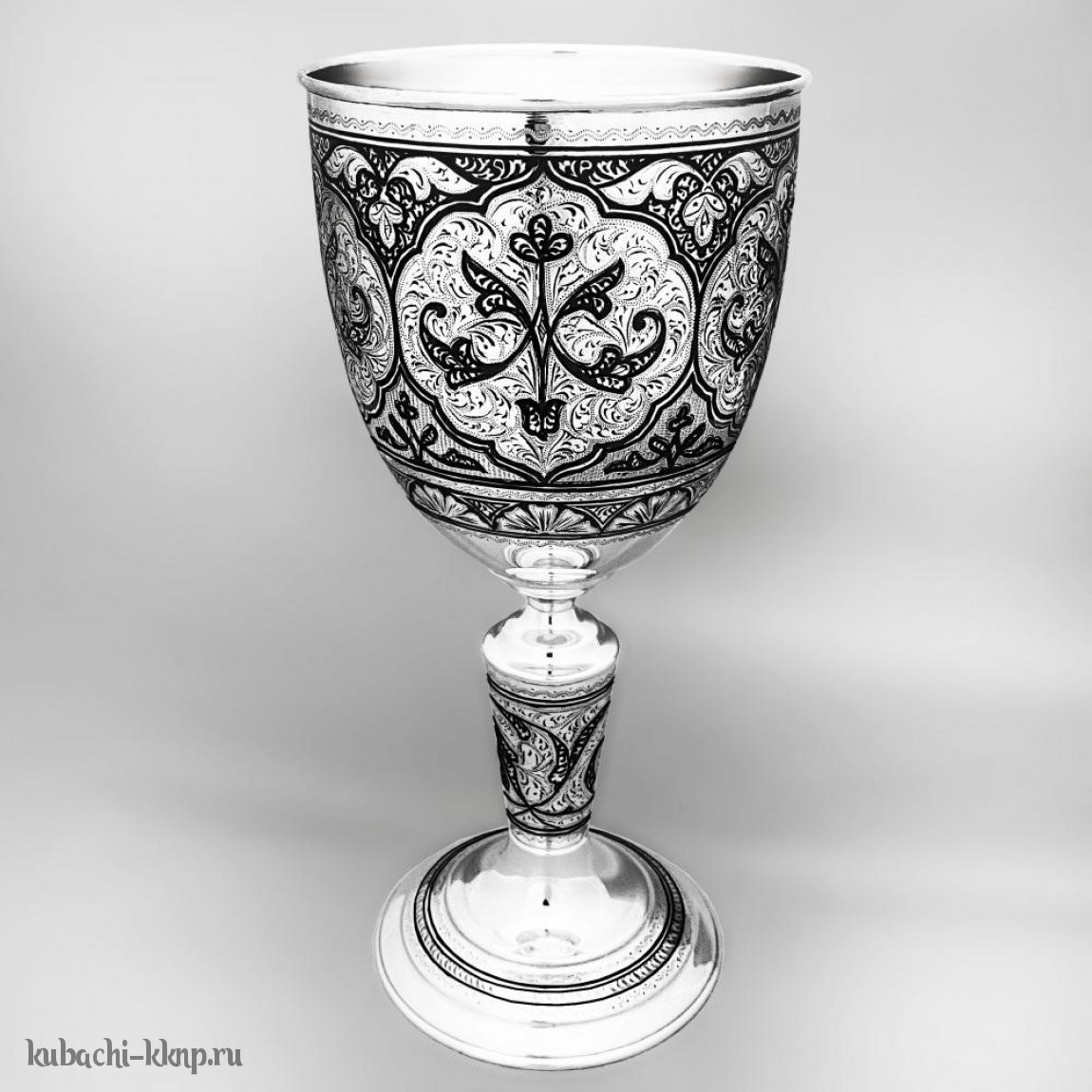 Серебряный кубок с уникальной кубачинской гравировкой, КБ023