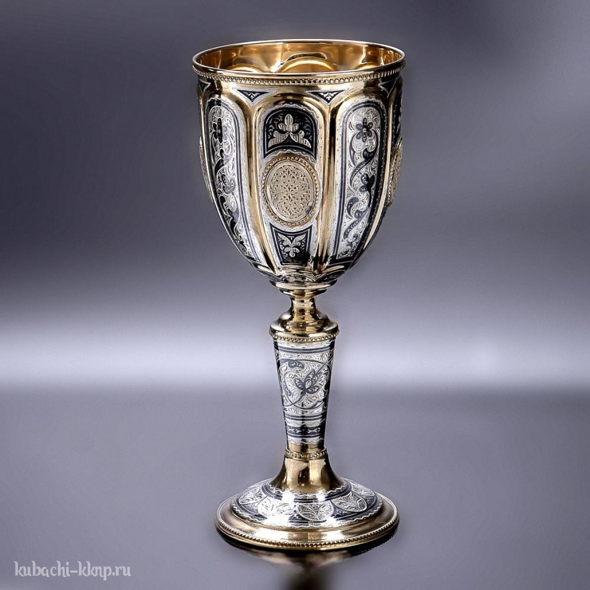 Серебряный кубок с уникальной кубачинской гравировкой - КБ023