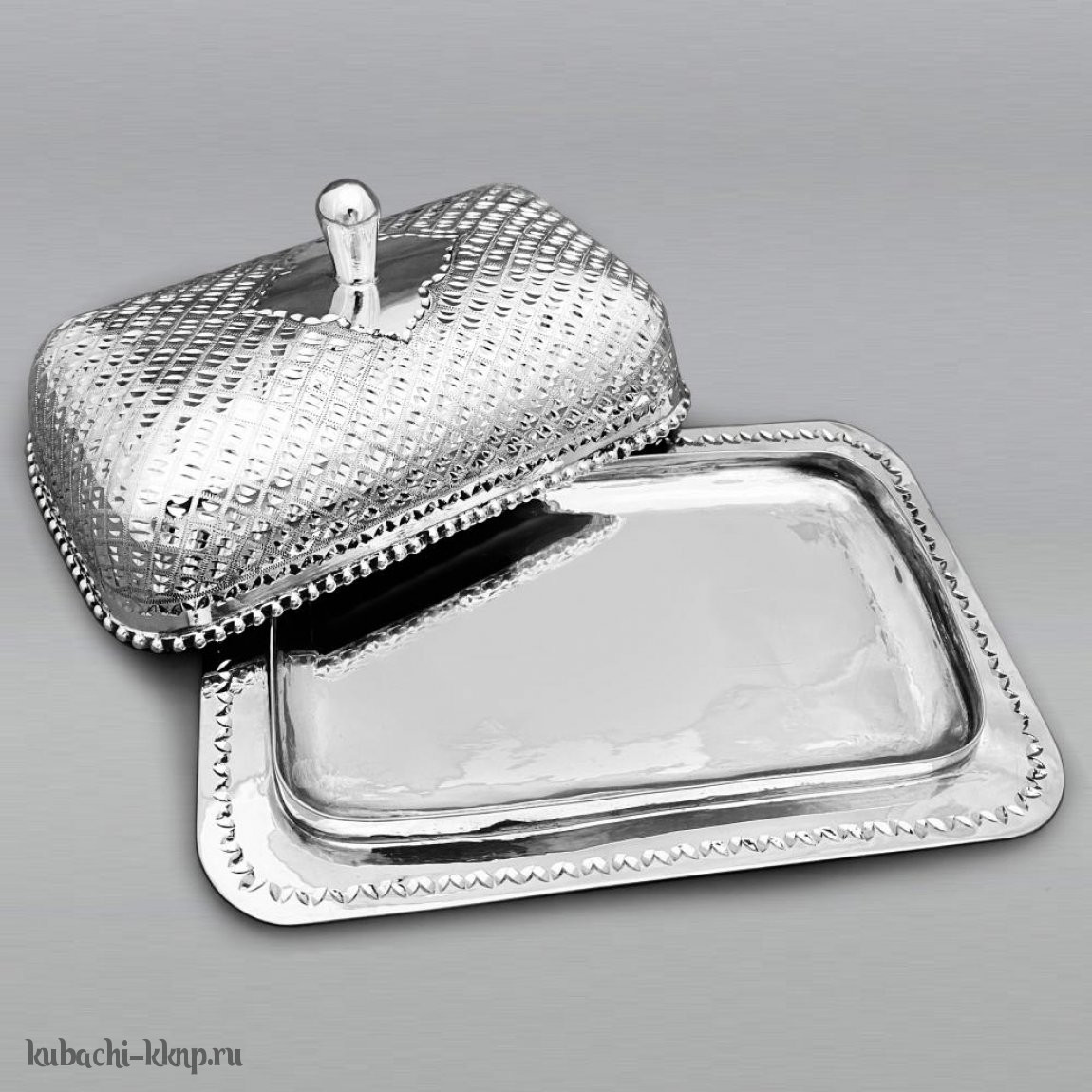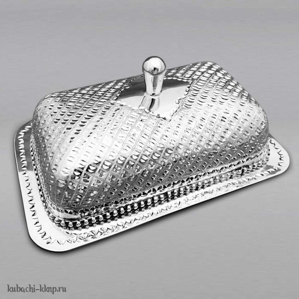 Серебряная масленка кругла с кубачинским орнаментом - мс01