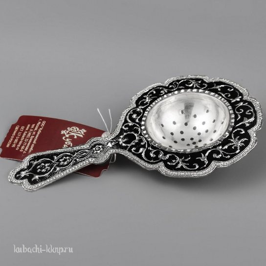 Серебряное ситечко для чая с гравировкой и чернением - СИТ05