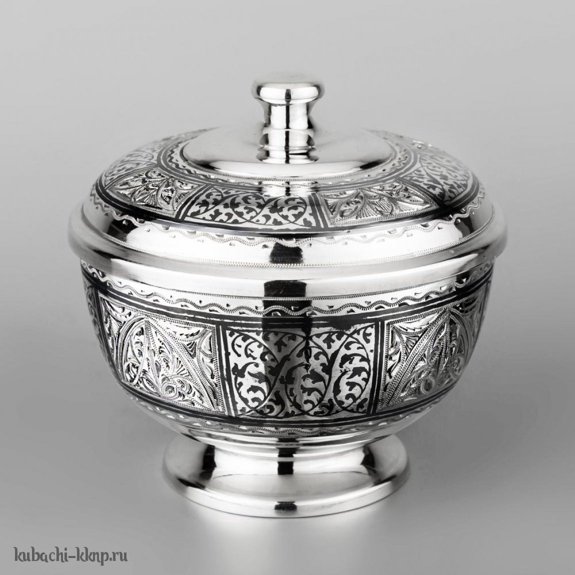 Серебряная сахарница с черненым орнаментом - сх06