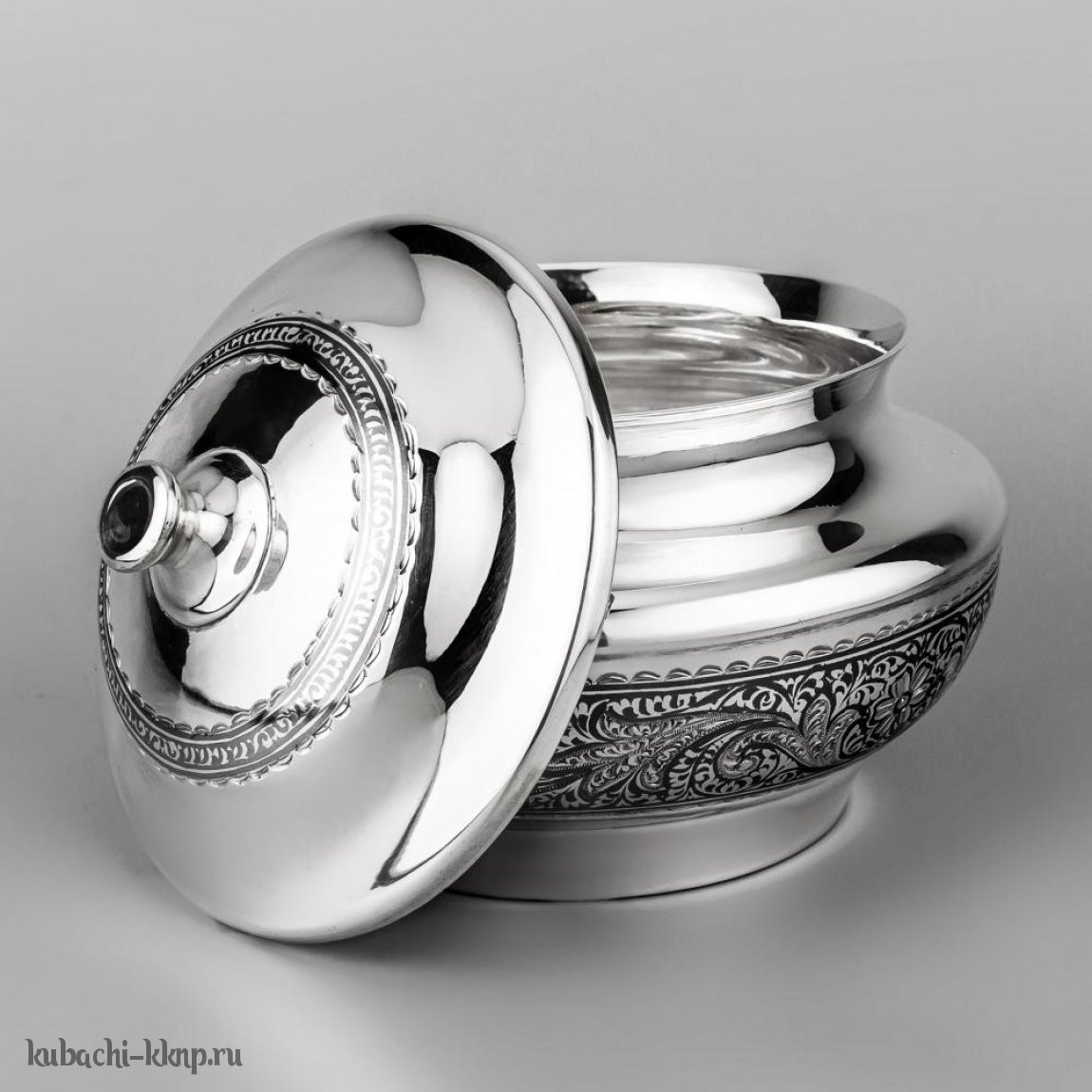 Серебряная сахарница с оксидировкой «Грация» - сх018