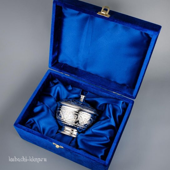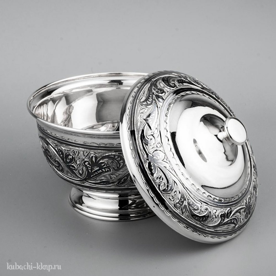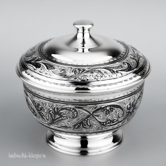 Серебряная сахарница  с крышкой и кубачинским орнаментом - СХ00064