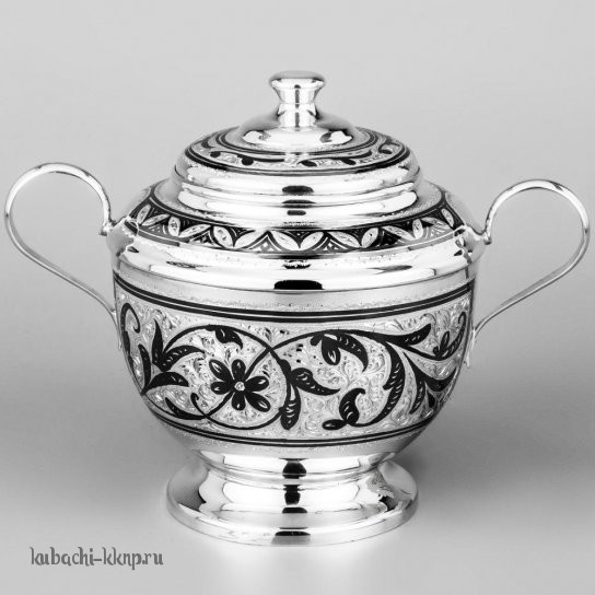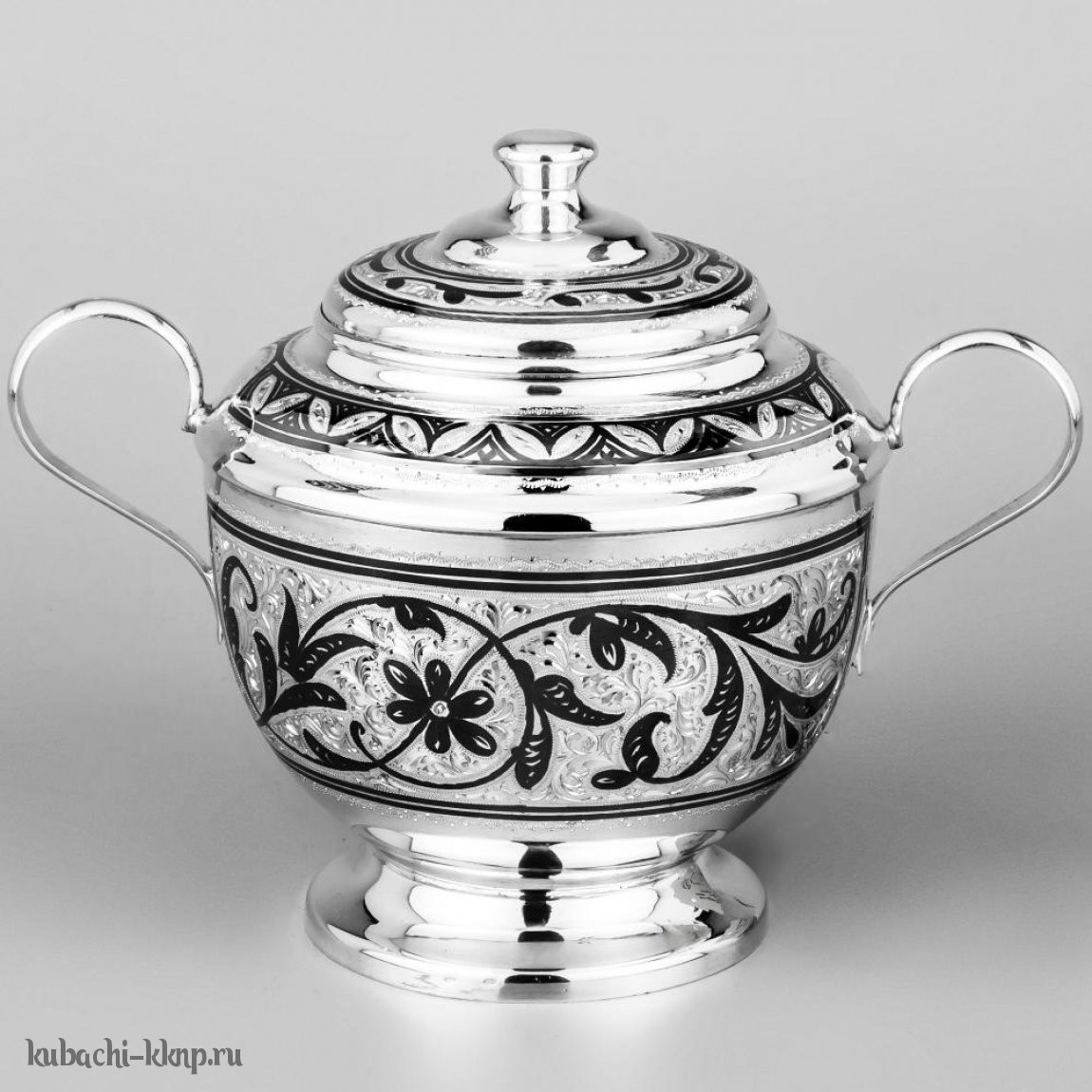 Серебряная сахарница с позолотой и эмалью - СХ097