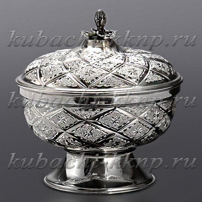 • Серебряная сахарница с ручками и кубачинским орнаментом - СХ094