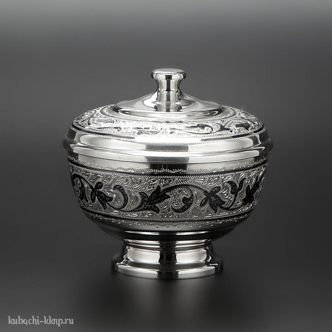Низкая серебряная сахарница с позолотой и эмалью «Финифть», 250 мл - сх013
