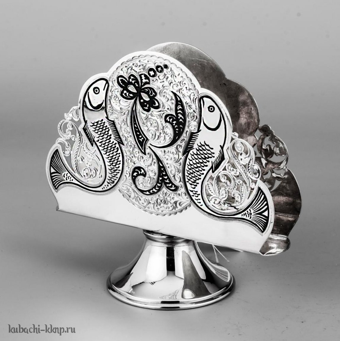 Серебряная салфетница с узором «Рыбка», сл015