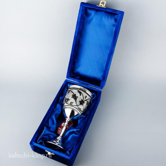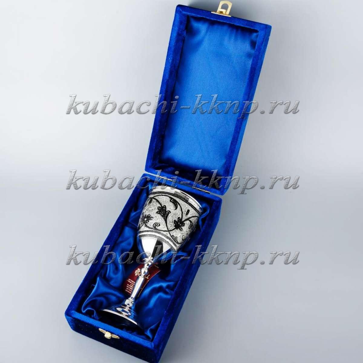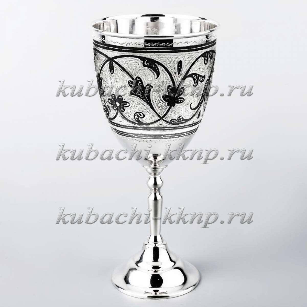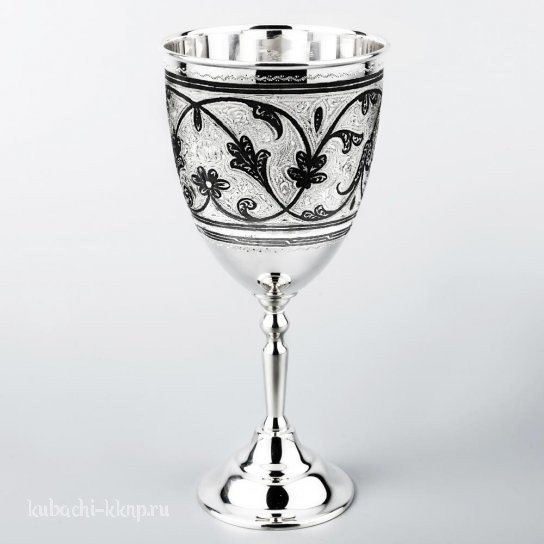 • Набор из шести серебряных бокалов на ножке с орнаментом Кубачи - бк062-6