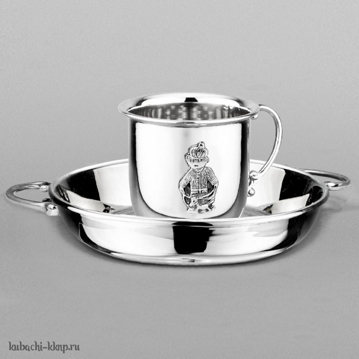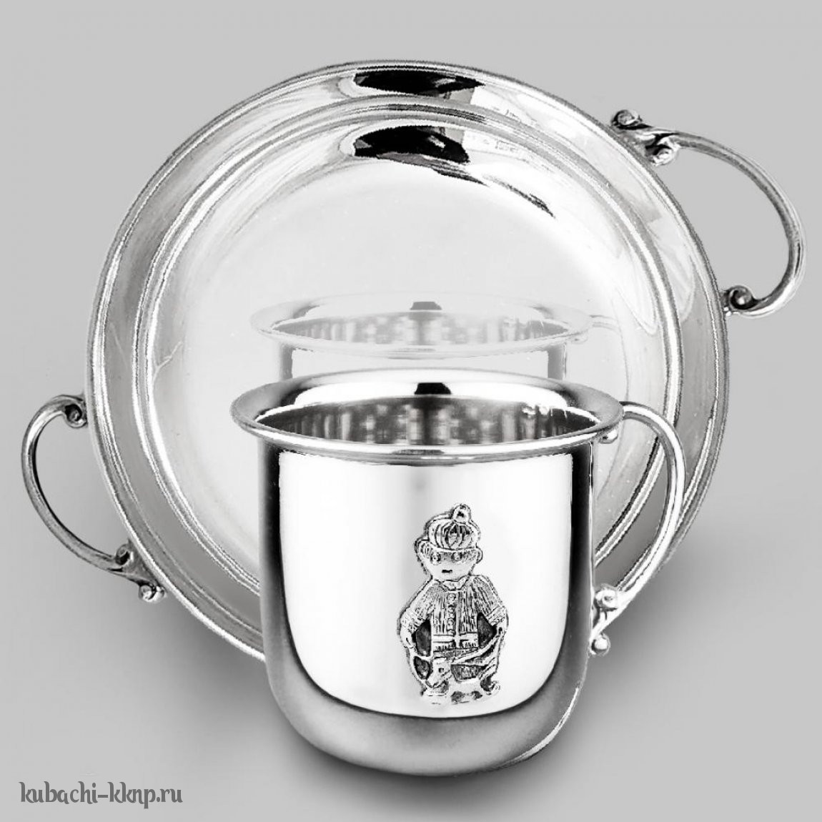 Детская серебряная кружка на тарелке «Малышь», кр126трк011