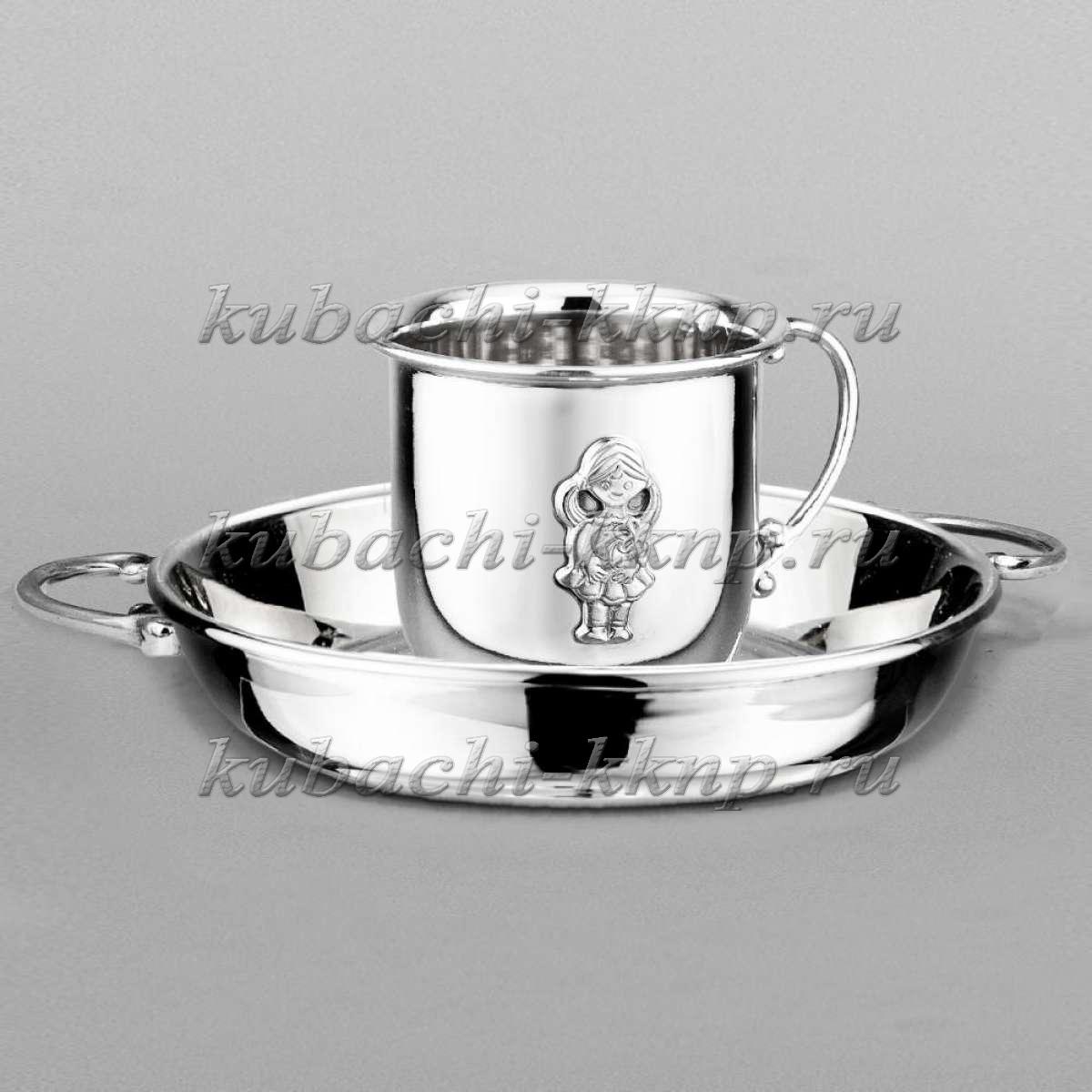 • Детская серебряная кружка на тарелке