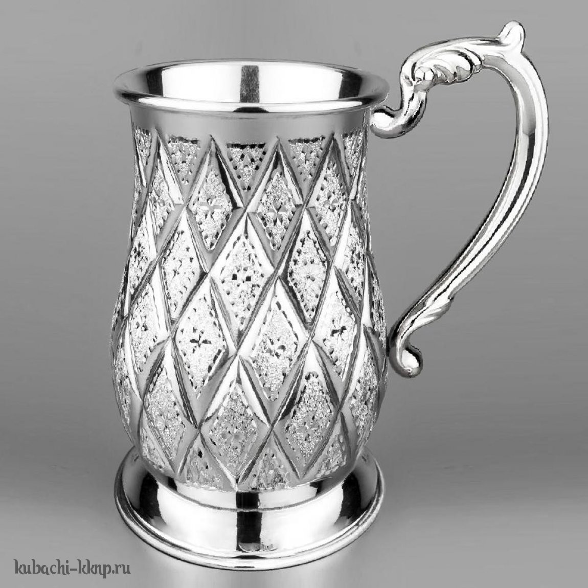 Серебряная кружка с чеканкой и Ромбиками, 500 мл - кр095