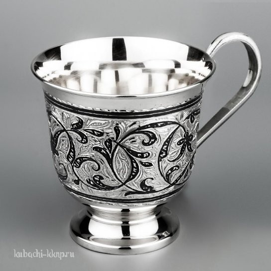 Кружка из серебра 875 пробы с растительным узором - кр06