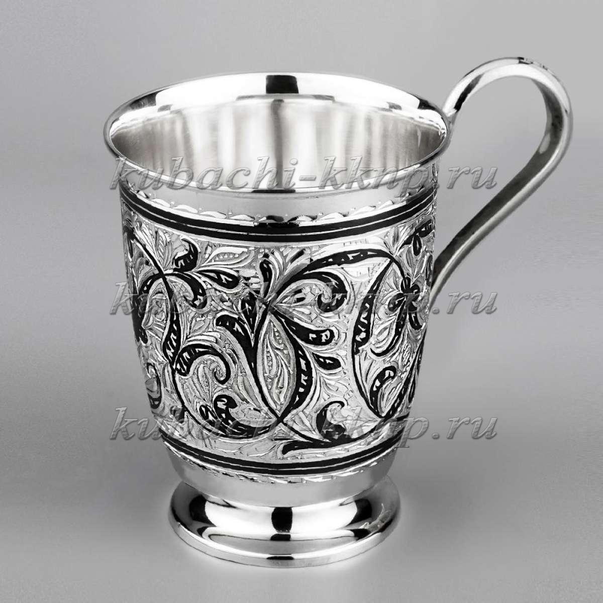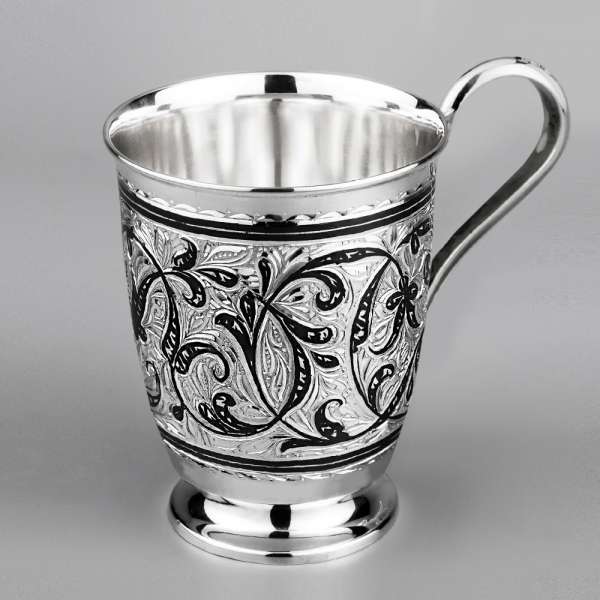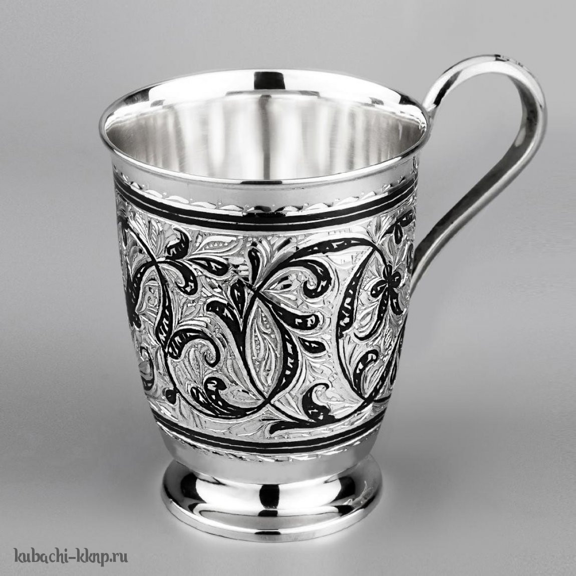 Кружка из серебра 875 пробы с растительным узором, кр06