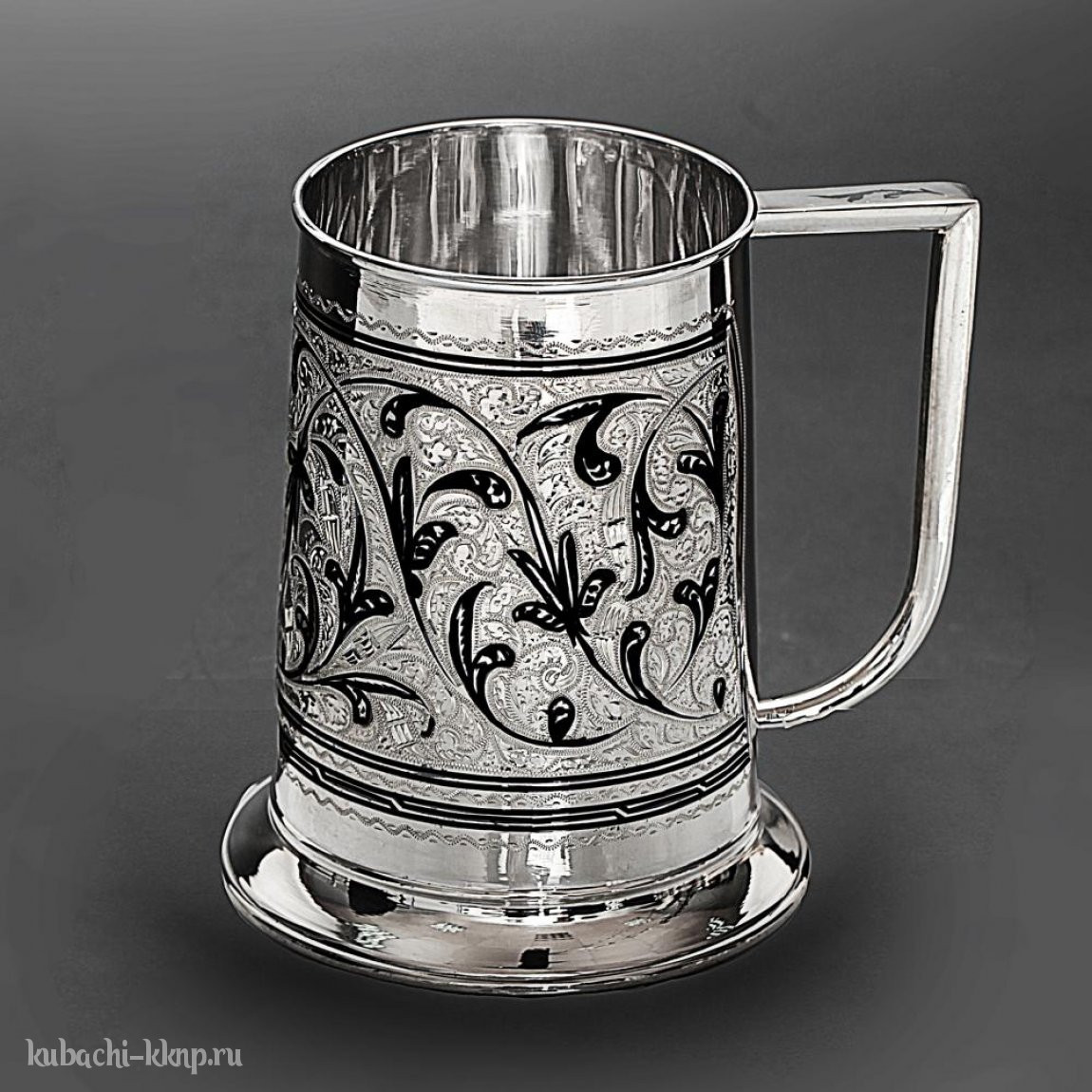 Кружка пивная из серебра 875 пробы, 530 мл, кр027