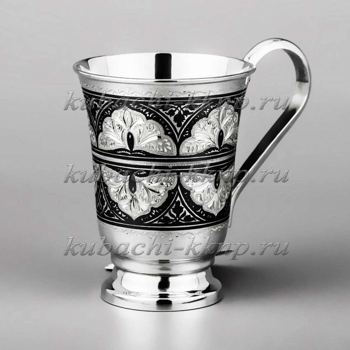 Серебряная кружка для воды с красивой гравировкой на ножке, кр078