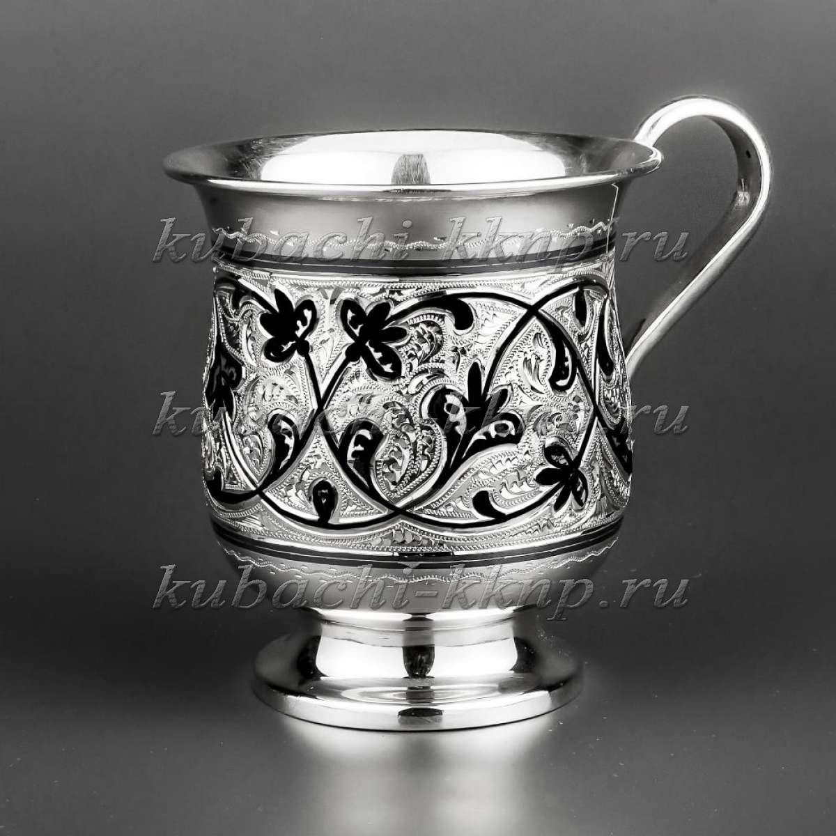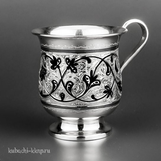 • Красивая серебряная кружка с орнаментом на ножке - кр00026