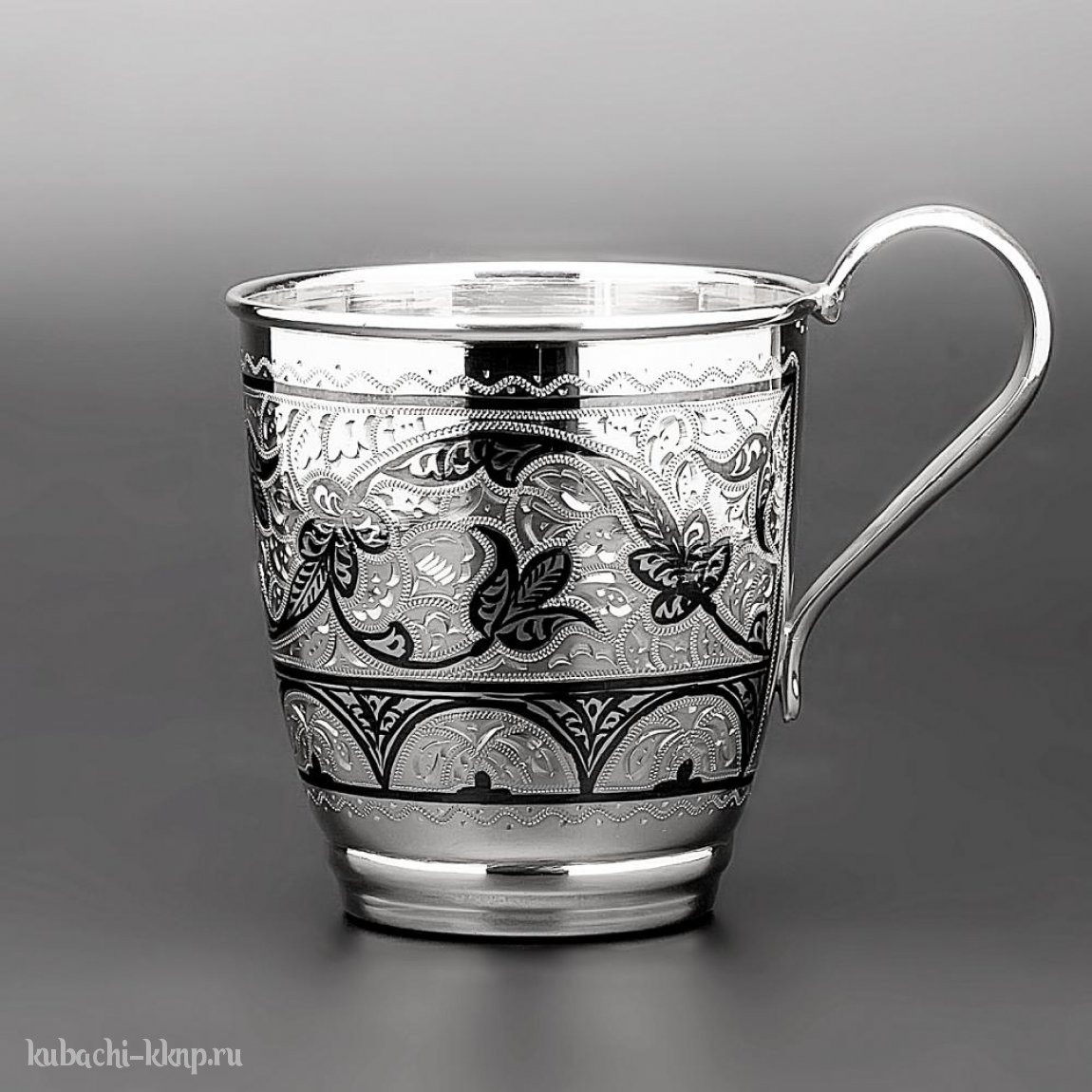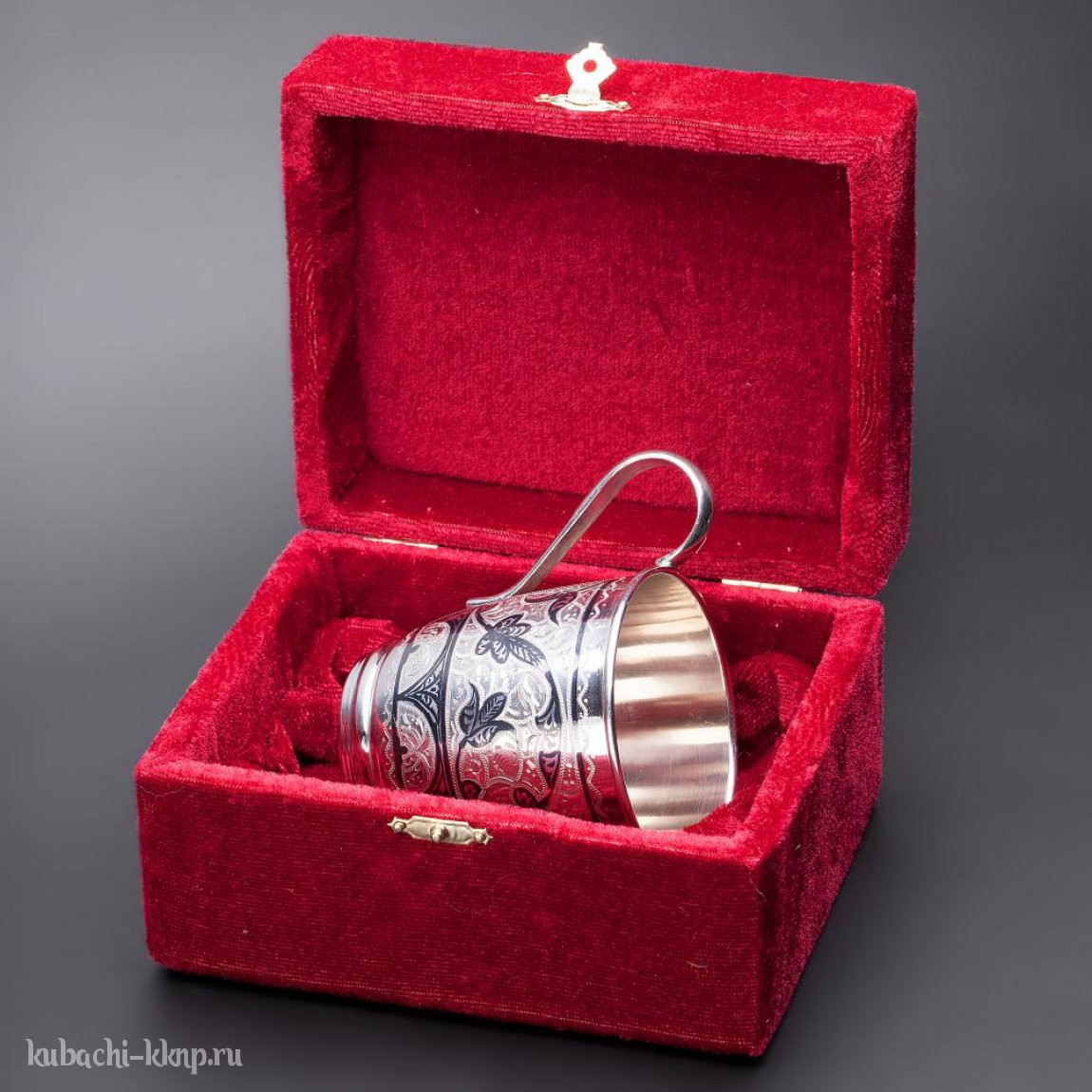 Небольшая серебряная кружка с оригинальным орнаментом - КР142
