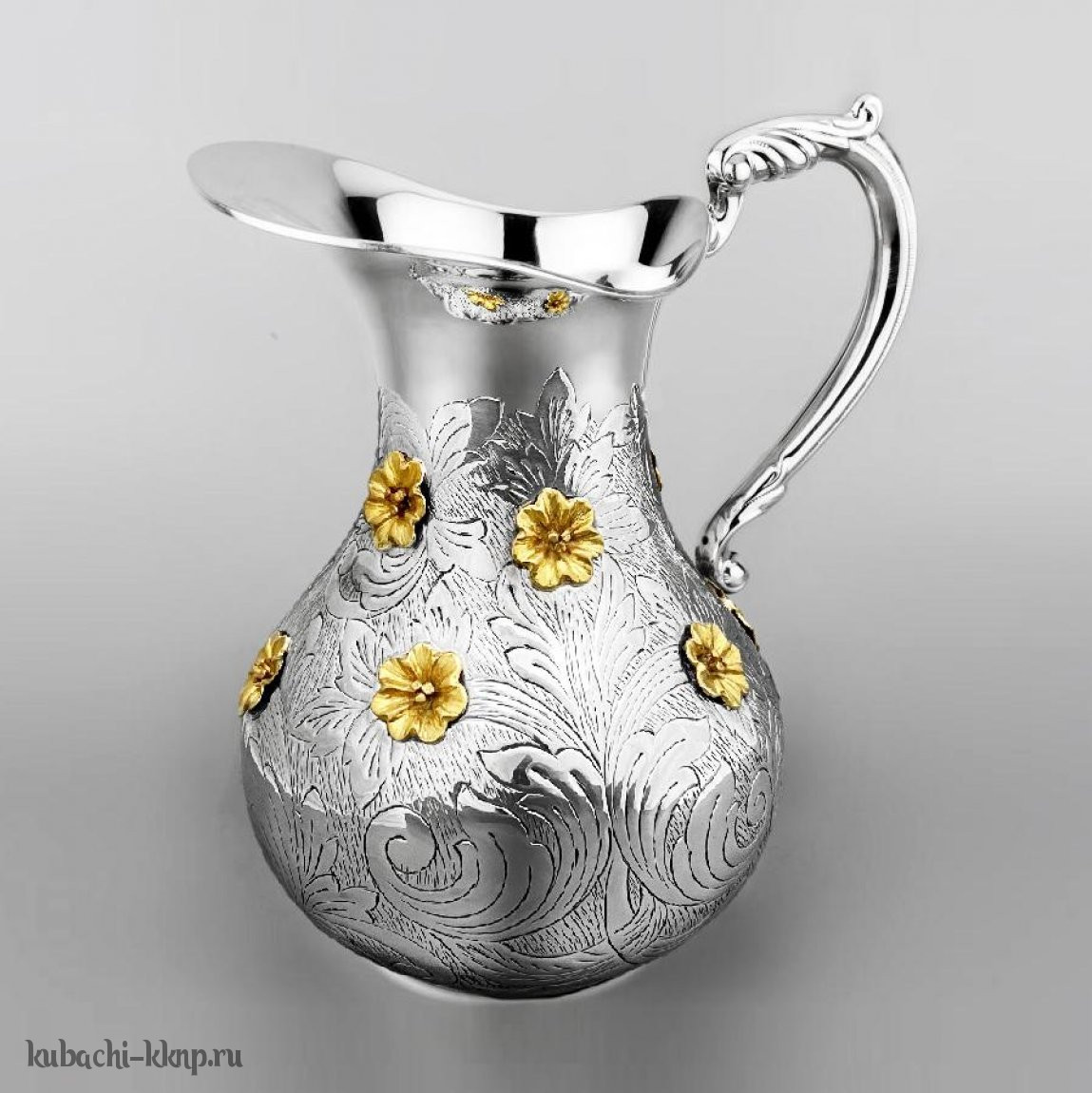 Серебряный кувшин для воды «Золотой цветок», КВ235