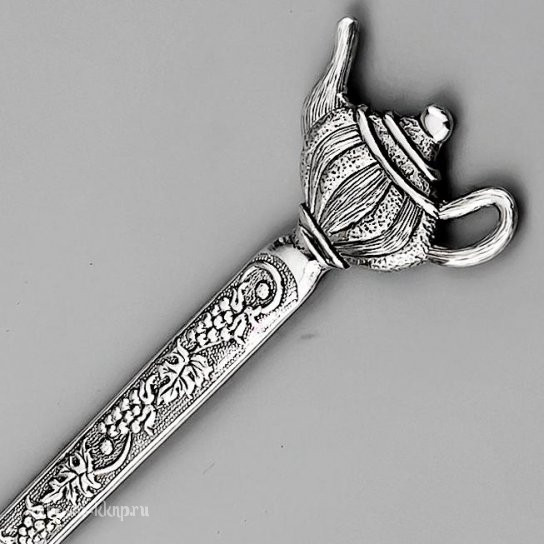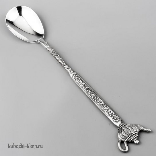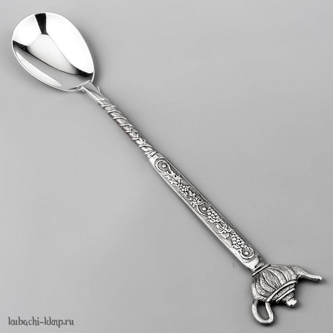Серебряная ложка с оригинальной ручкой и красивым чайником, л00063