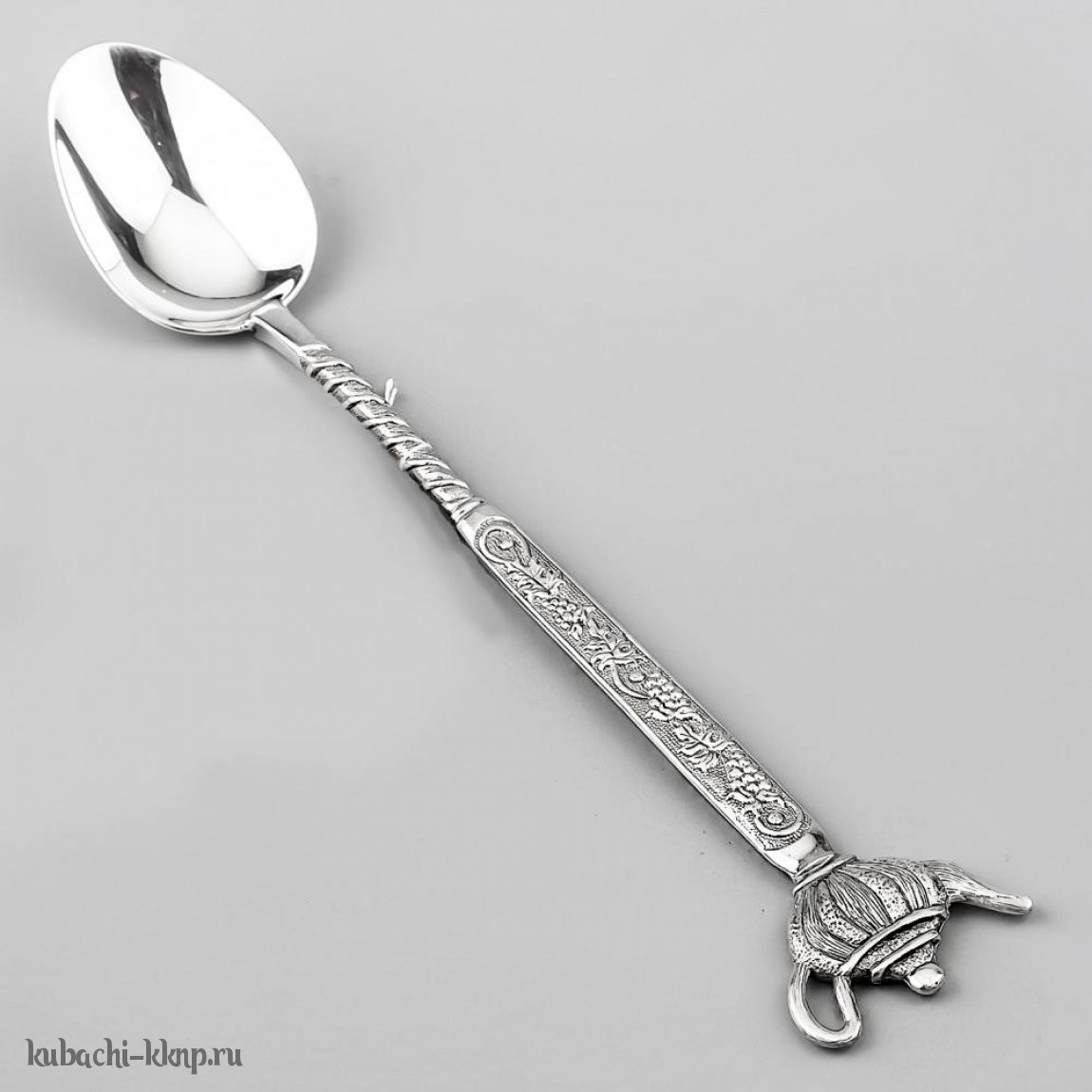 Серебряная ложка с красивой ручкой и чайником - л00066