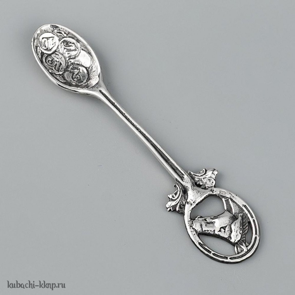 Серебряная ложка с красивой ручкой и чайником - л00066