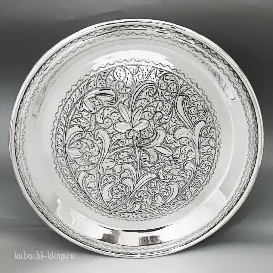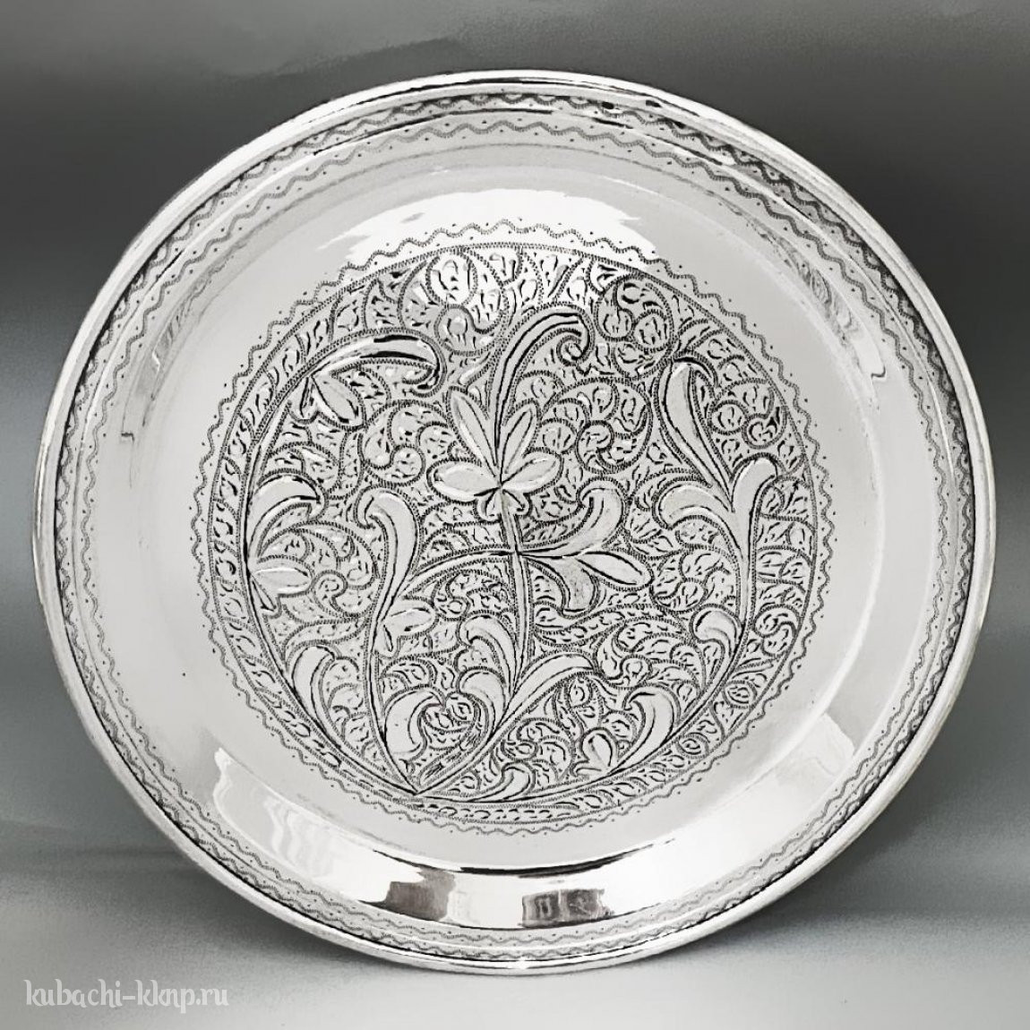 Серебряный поднос Кубачи с арочным орнаментом - пдн0005