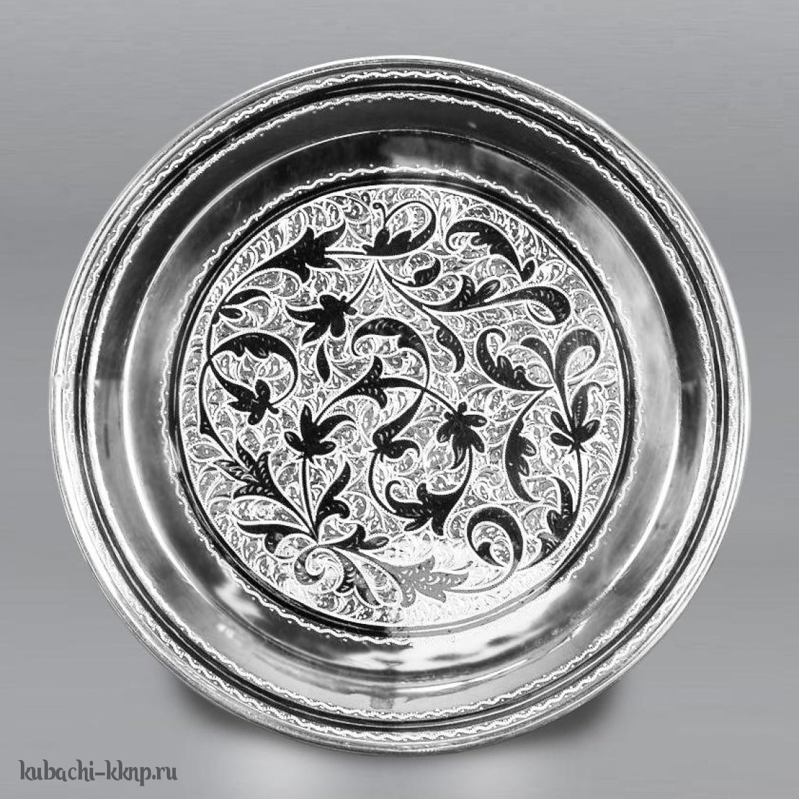 Поднос серебряный с оксидировкой и гравировкой - пдн024